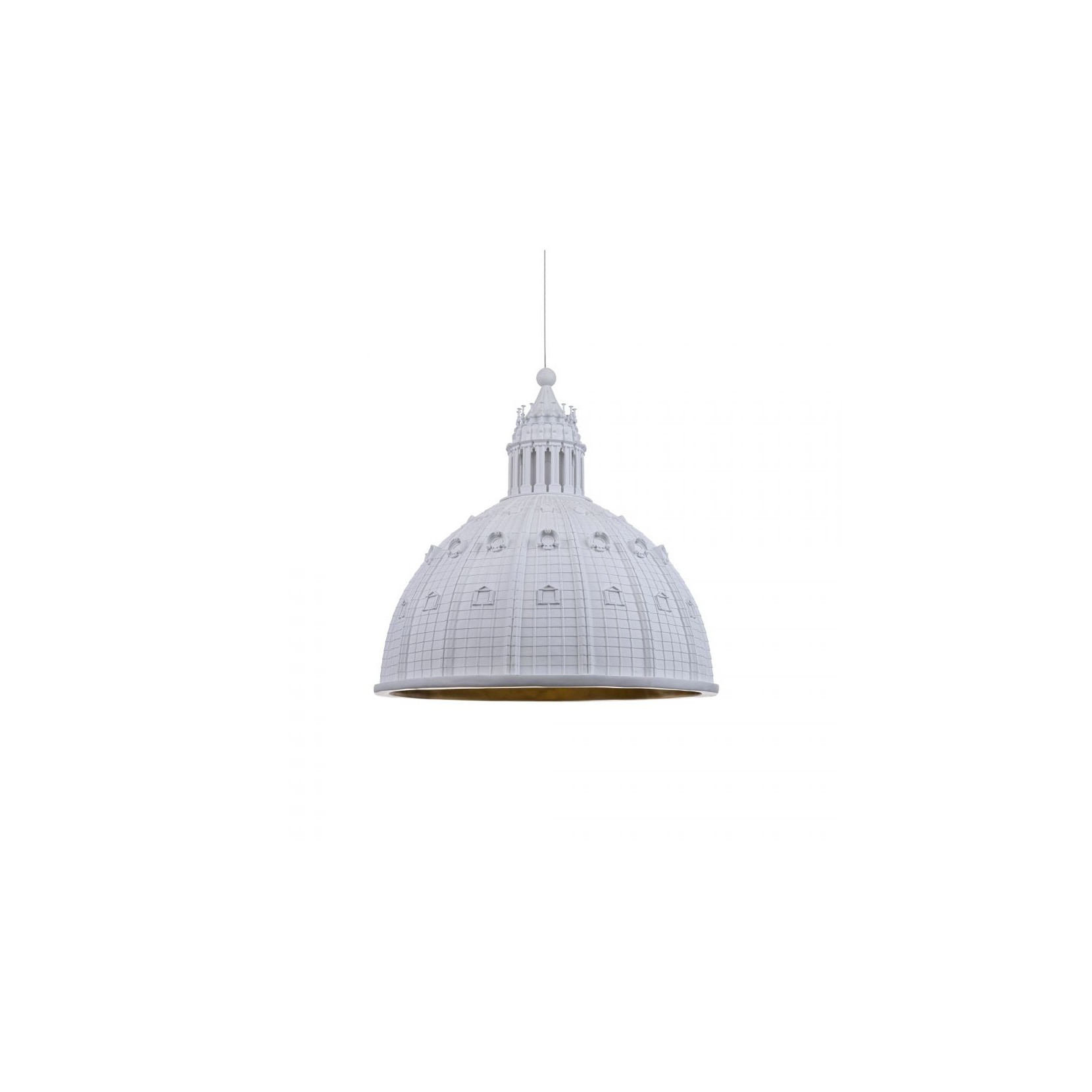 La lampada a sospesnione CUPOLONE firmata AMeBE è la fedele riproduzione dell'iconico simobolo della città eterna, ovvero omaggio alla belezza ed arte della cupola di San Pietro.