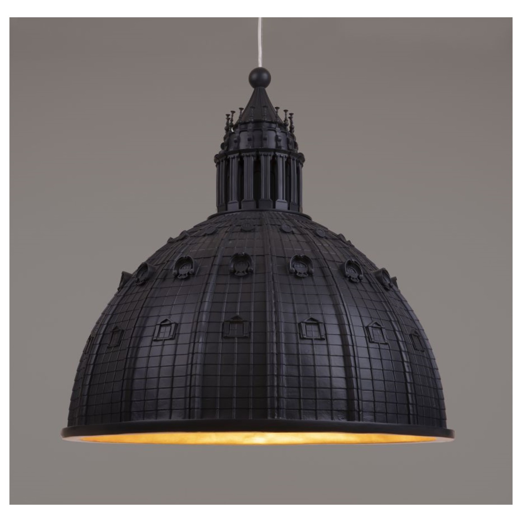 La lampada a sospesnione CUPOLONE firmata AMeBE è la fedele riproduzione dell'iconico simobolo della città eterna, ovvero omaggio alla belezza ed arte della cupola di San Pietro.