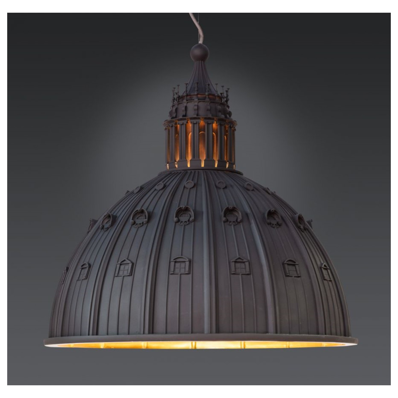 La lampada a sospesnione CUPOLONE firmata AMeBE è la fedele riproduzione dell'iconico simobolo della città eterna, ovvero omaggio alla belezza ed arte della cupola di San Pietro.