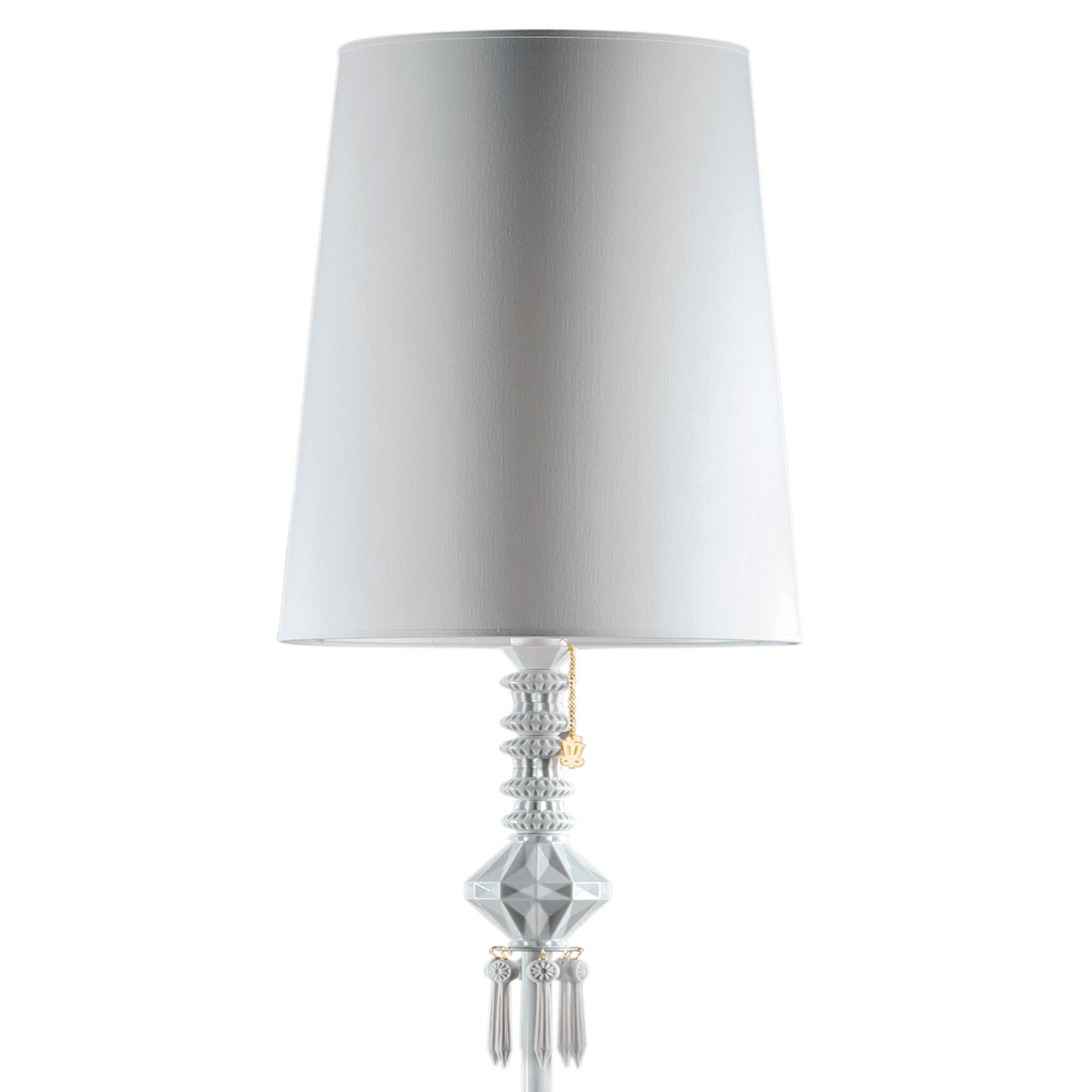 Bellezza della notte. Tale è il nome della pianta i cui petali riflettono il chiaro di luna, acquisendo così la proprietà magica di brillare al buio. Questa specie sorprendente fornisce l'ispirazione per la collezione di illuminazione Belle de Nuit, in particolare le lampade da terra. Un design versatile con grandi possibilità decorative in tutti gli ambienti che non richiede alcuna installazione speciale. I portalampada hanno una catena di commutazione che incorpora un logo Lladró placcato oro alla fine.