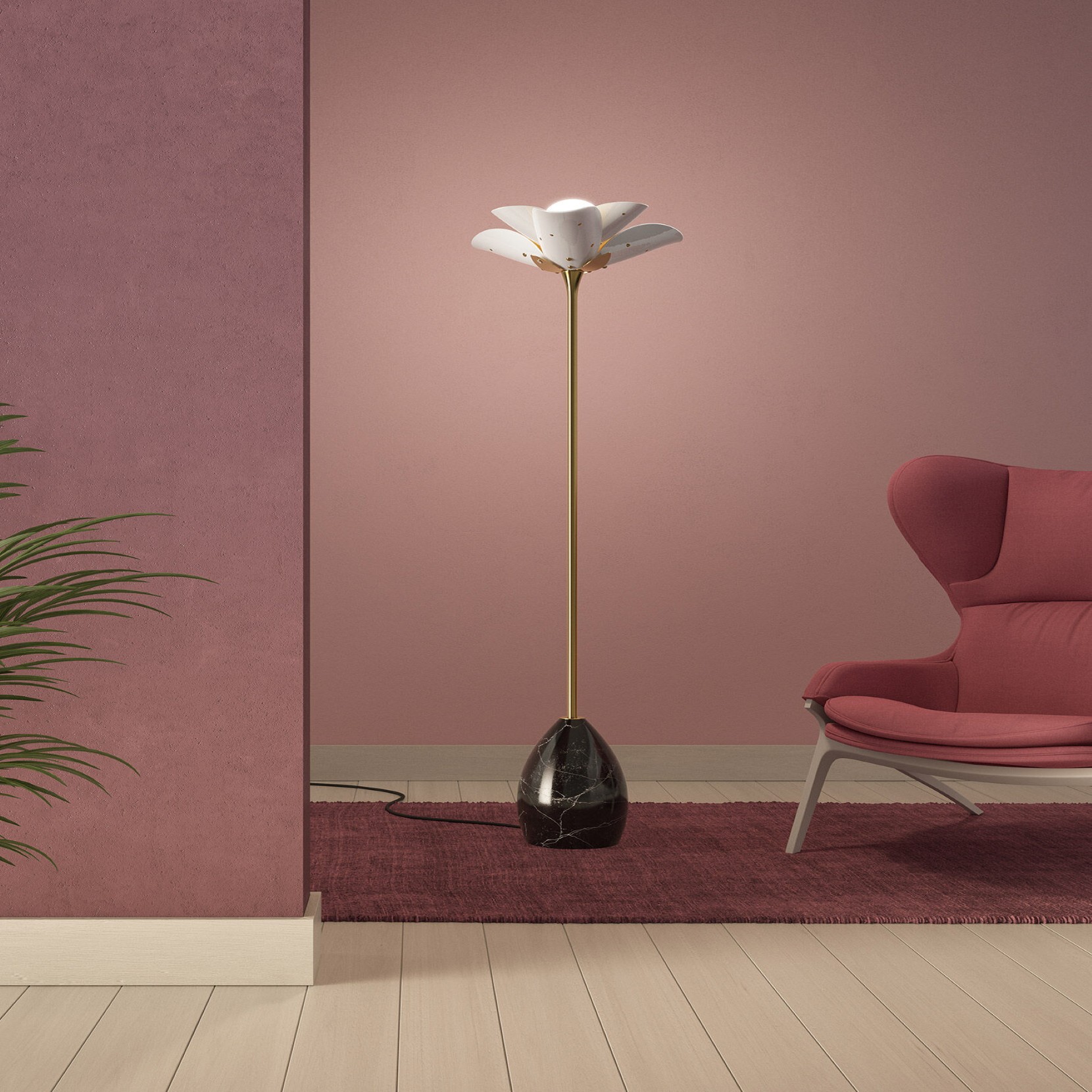 Queste lampade dalle linee pulite e dal trattamento dinamico delle forme, sia nella realizzazione che nella disposizione, evocano il momento magico in cui i fiori si aprono con i primi raggi di sole.