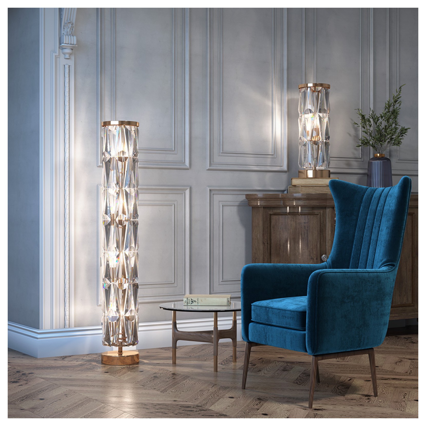 PUNTES è la lampada a terra che tutti vorrebbero avere a casa. La struttura in metallo dal colore oro o cromato, diffusori in lastre di vetro. L'altezza della lampada è regolabile.