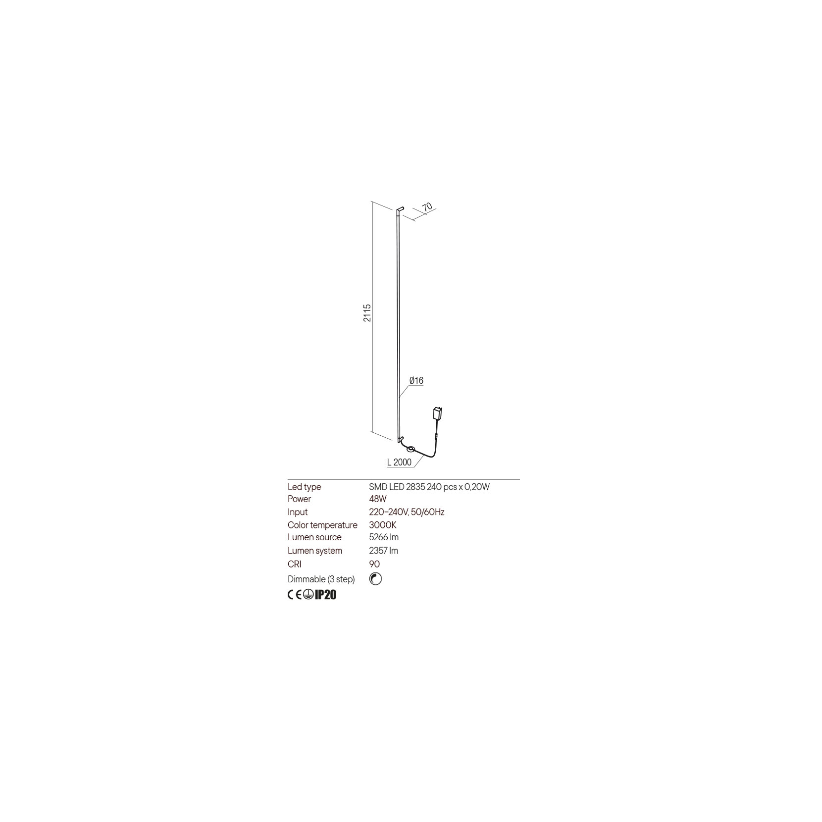 Redo Group STICK - Lampada da parete (2115x70x16)
