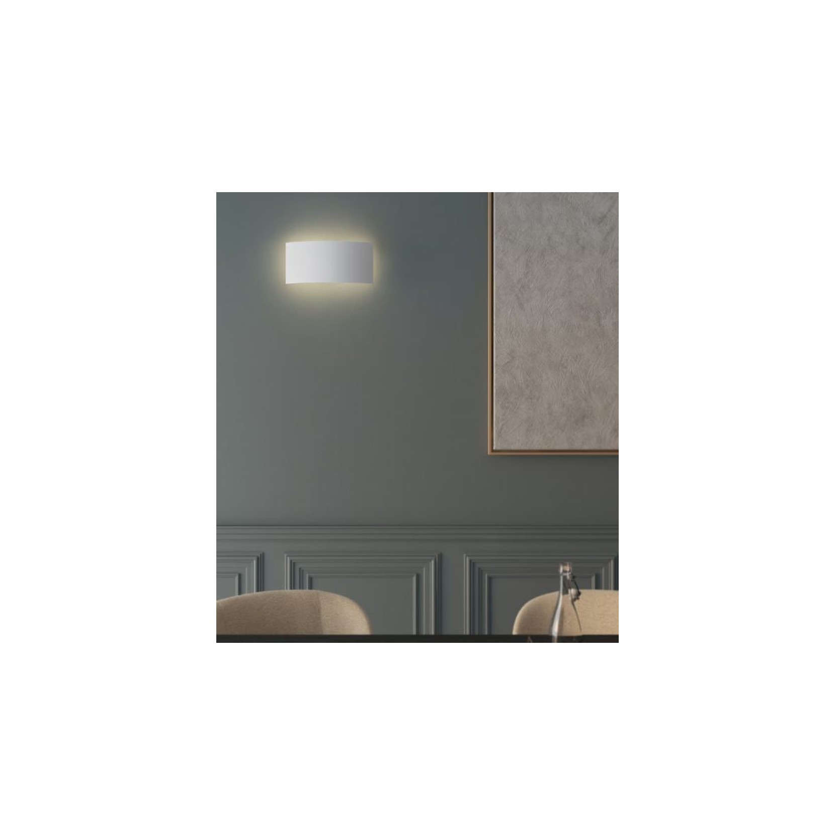 Comino 320 è una lampada da parete in gesso, ideale per corridoi e aree living.