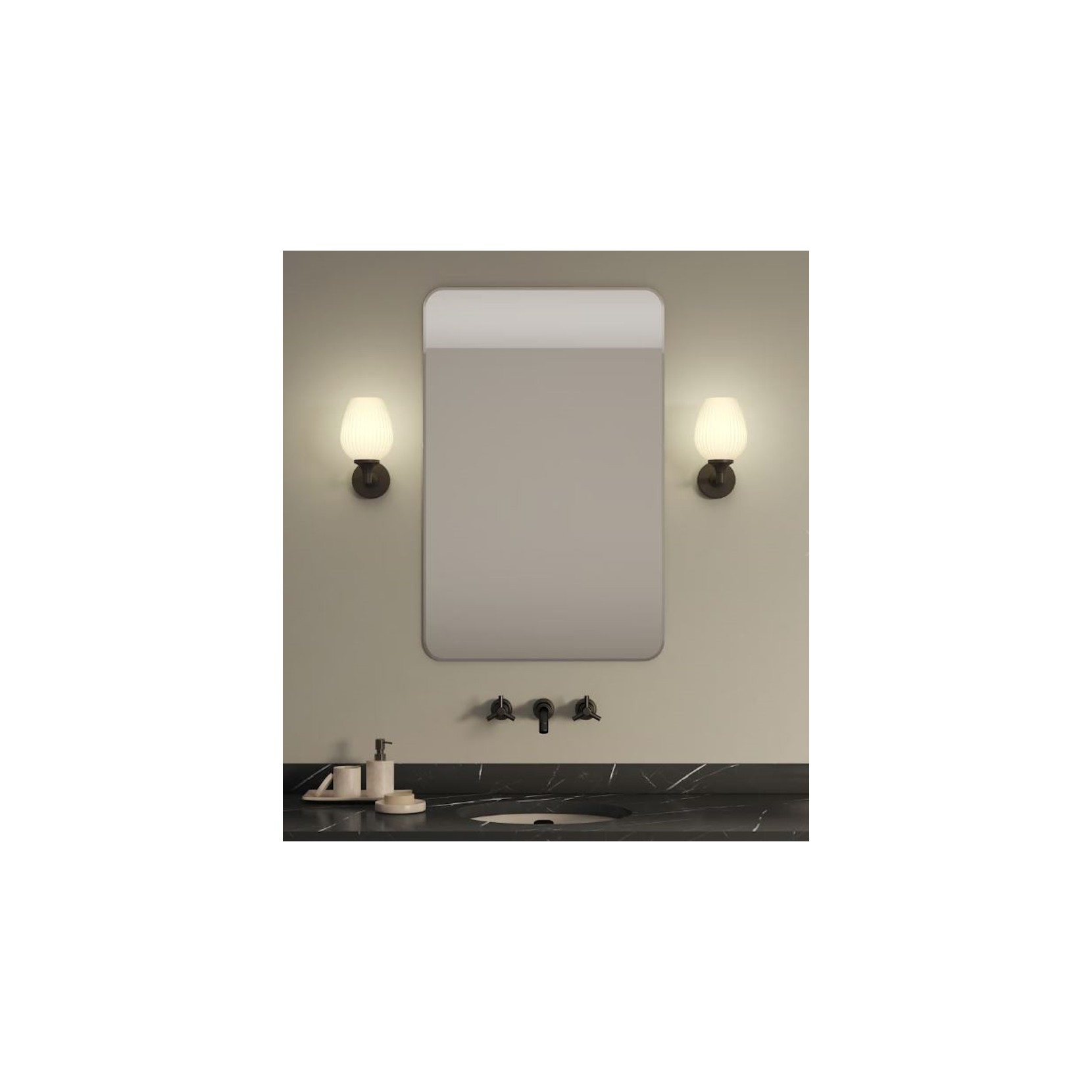 Genera una luce calda, ideale per illuminare lo specchio del bagno.