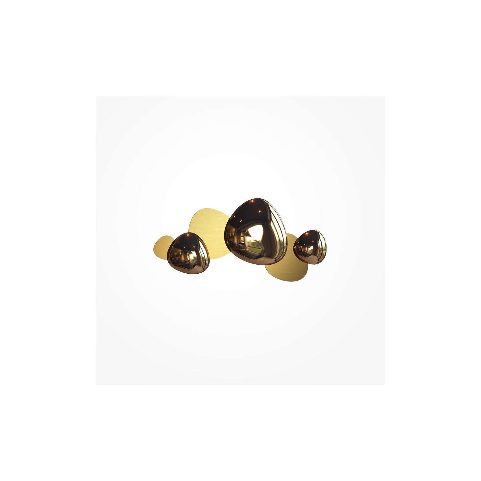 L'applique Jack-Stone si distingue per la sua composizione dinamica ispirata alla forma dei ciottoli levigati dall'acqua. Questa lampada non si limita a illuminare, ma interagisce con lo spazio circostante riflettendo l'ambiente come piccoli specchi convessi. La struttura è completata da dischi piatti coordinati che fungono da riflettori, creando un sofisticato gioco di profondità e luce indiretta sulla parete.