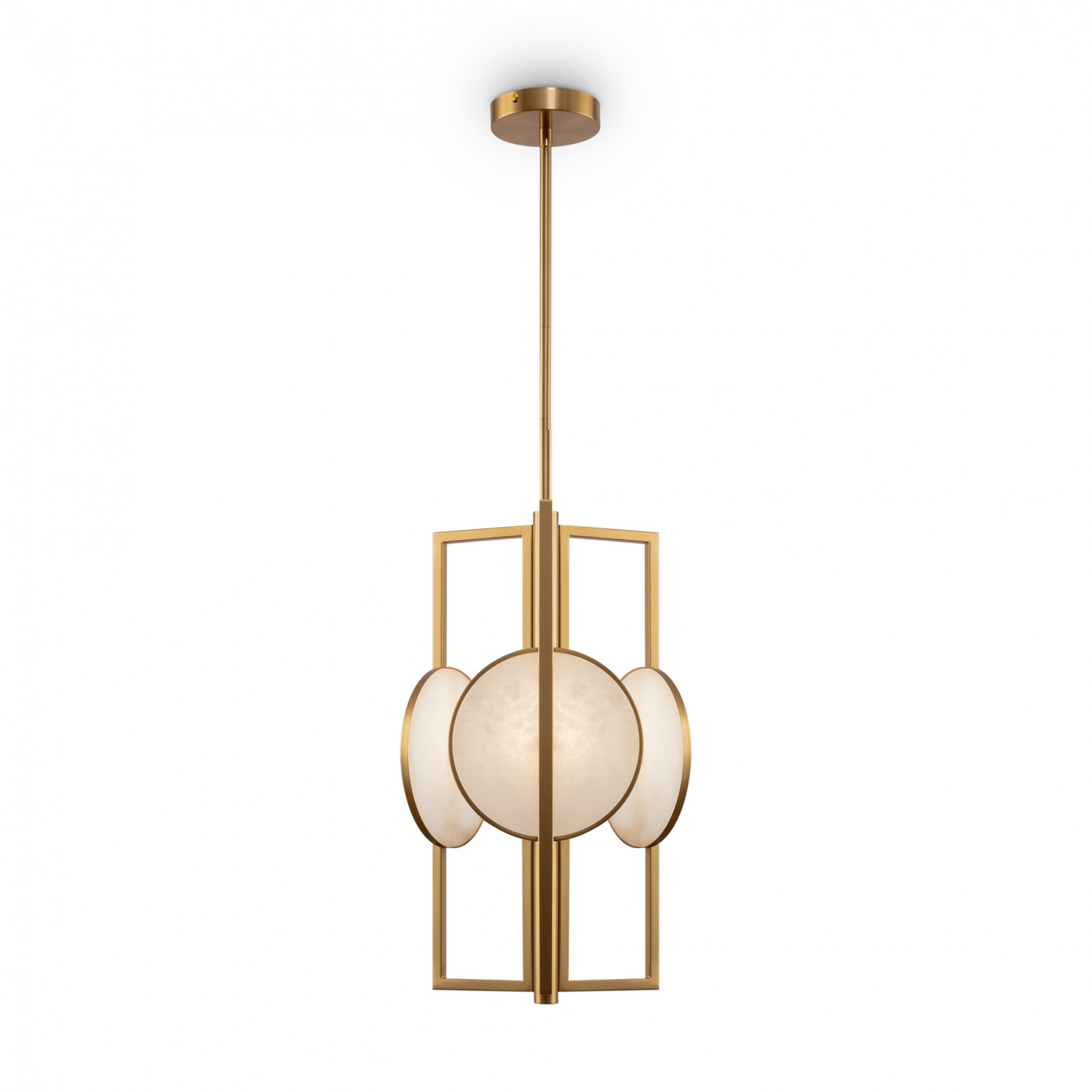 La lampada a sospensione MARMO si presenta con una struttura in metallo di colore oro. Il decoro di a disco in pietra naturale. L'altezza delle lampade a sospensione è regolabile. Marmo si adatta molto ad ambienti moderni e da design.