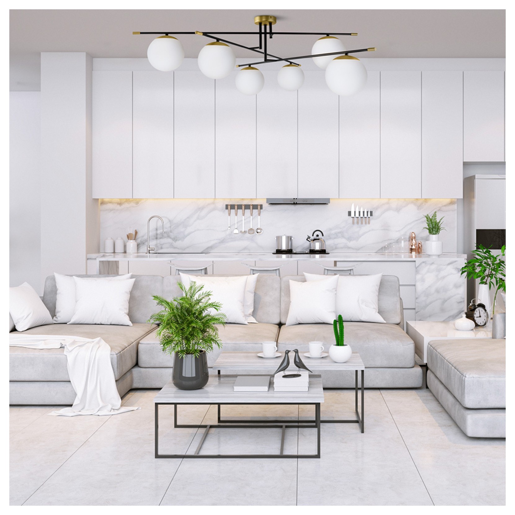 La lampada da soffitto NOSTRALGIA si presenta con una struttura di metallo con diffusori in vetro bianco acidato. La lampada si presta sia ad ambienti moderni che contemporanei.