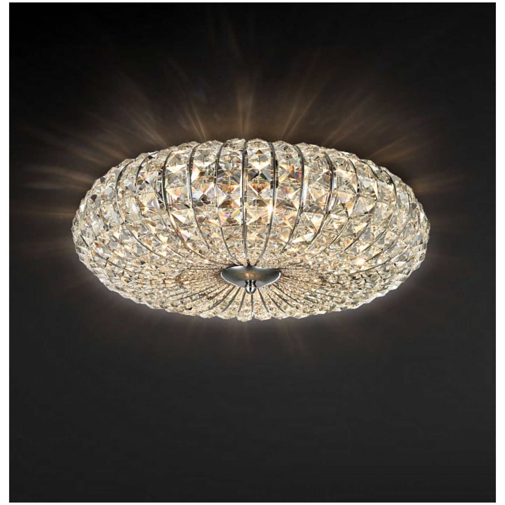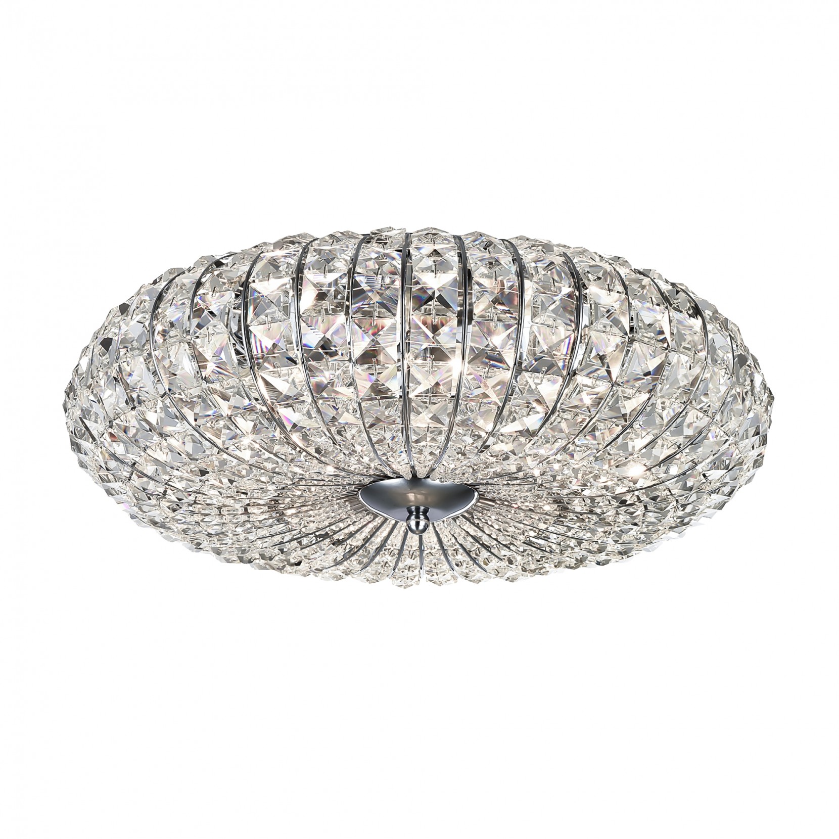 BROCHE è la lampada a soffitto che illumina con eleganza la stanza. La struttura in metallo tonda con quadrati di cristallo. La lampada riesce a rendere gli ambienti accoglienti e di grande effetto. Broche si adatta sia ad ambienti classici che contemporanei.