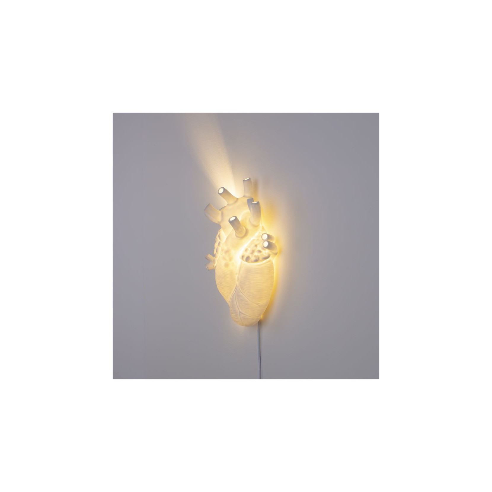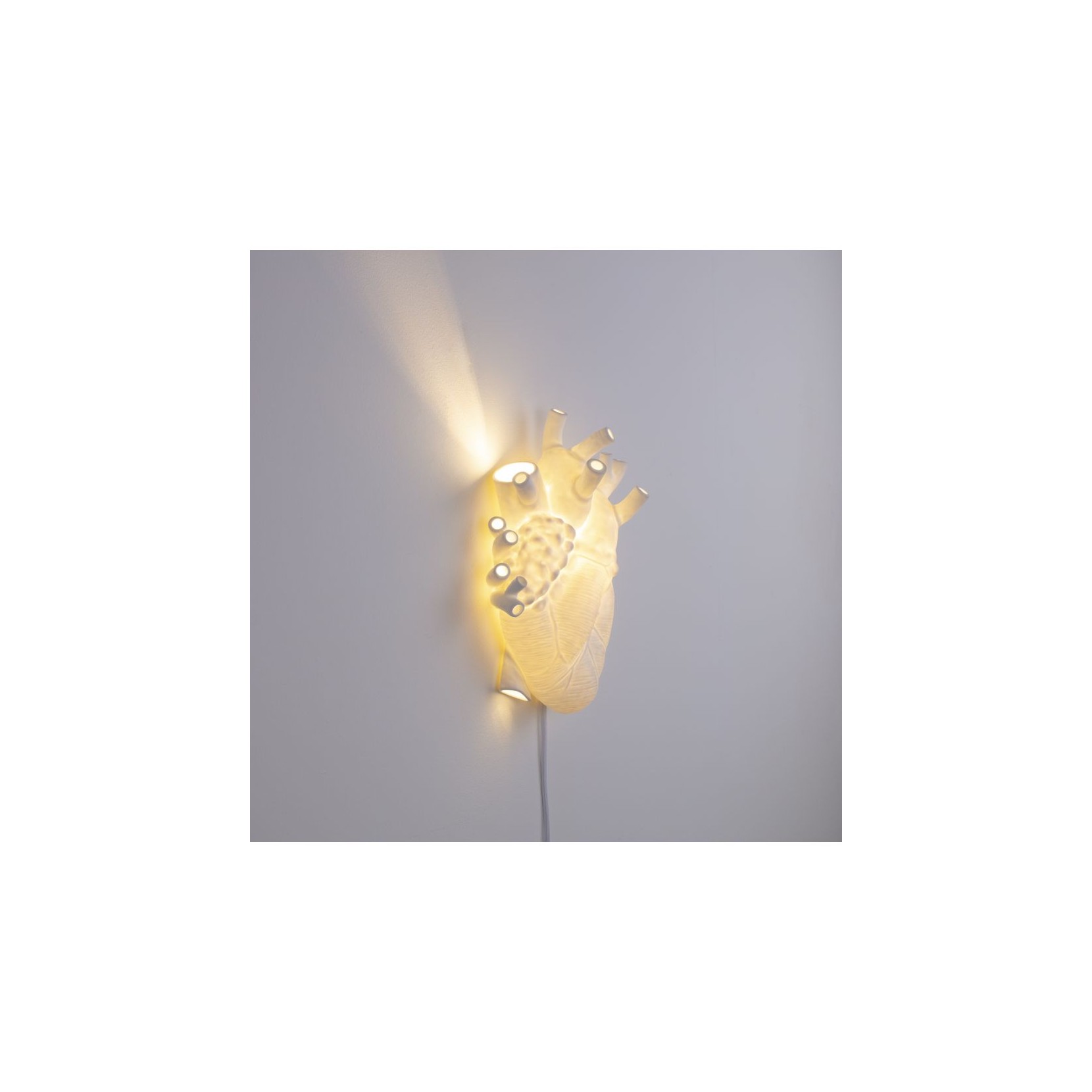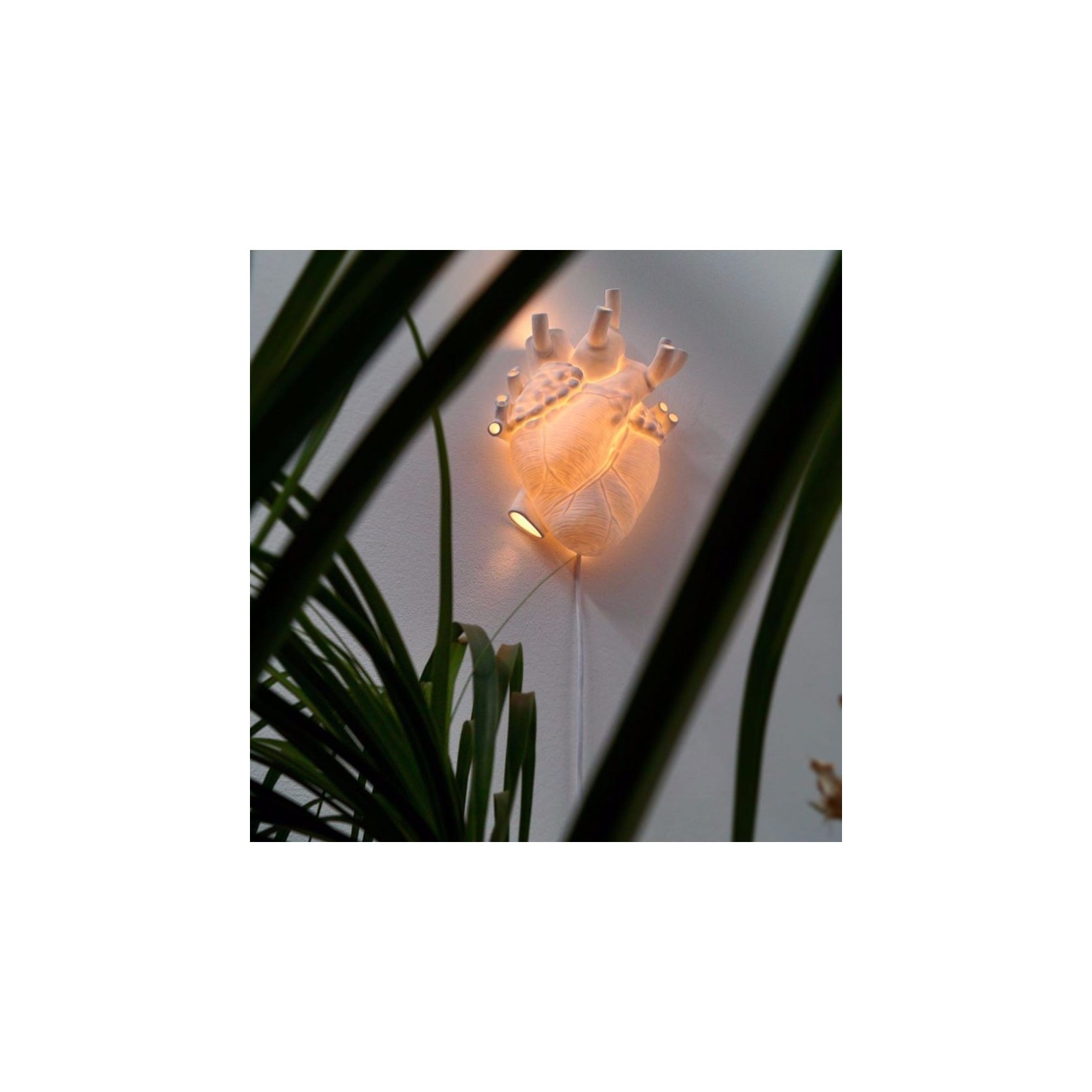 Il cuore anatomico rappresenta la perfezione dell'essenza umana, la lampada Heart è anche simbolo di sentimenti insapettati che fanno pulsare il cuore. SELETTI in collaborazione con il designer Marcantonio ha saputo combinare forme con una luce soffusa.