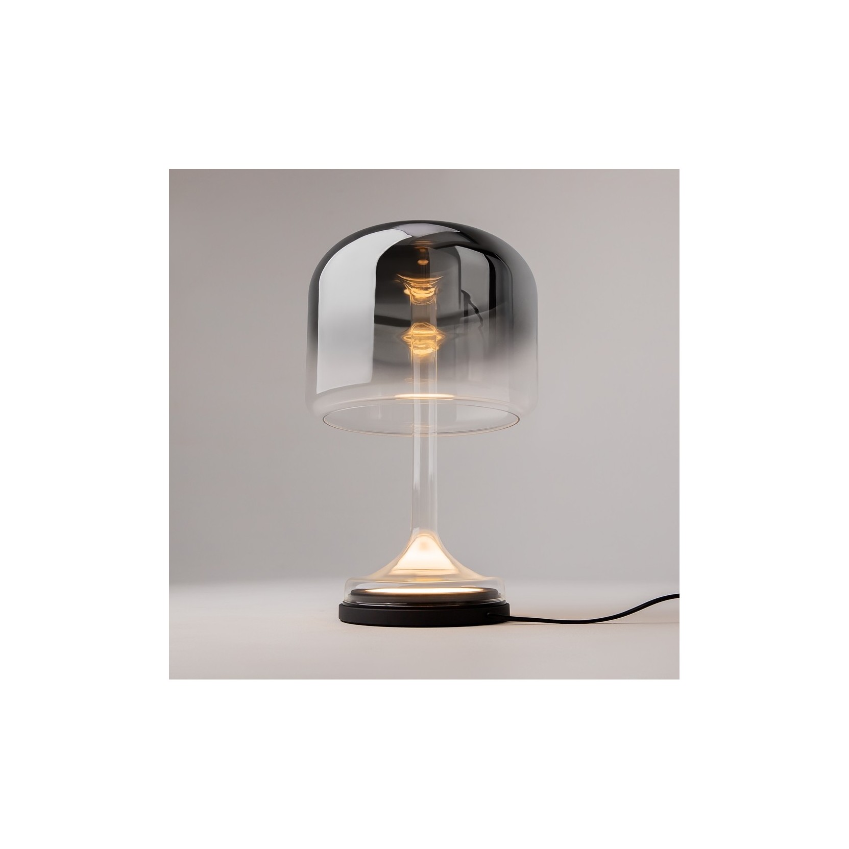 La lampada da tavolo Spirito è un oggetto di design che celebra la bellezza del vetro soffiato e la preziosità delle finiture metalliche. Evoluzione naturale dell'omonima versione a sospensione, questa lampada da appoggio si distingue per una silhouette a "fungo" rivisitata in chiave moderna e lussuosa, capace di trasformare la luce in un elemento d'arredo vibrante.