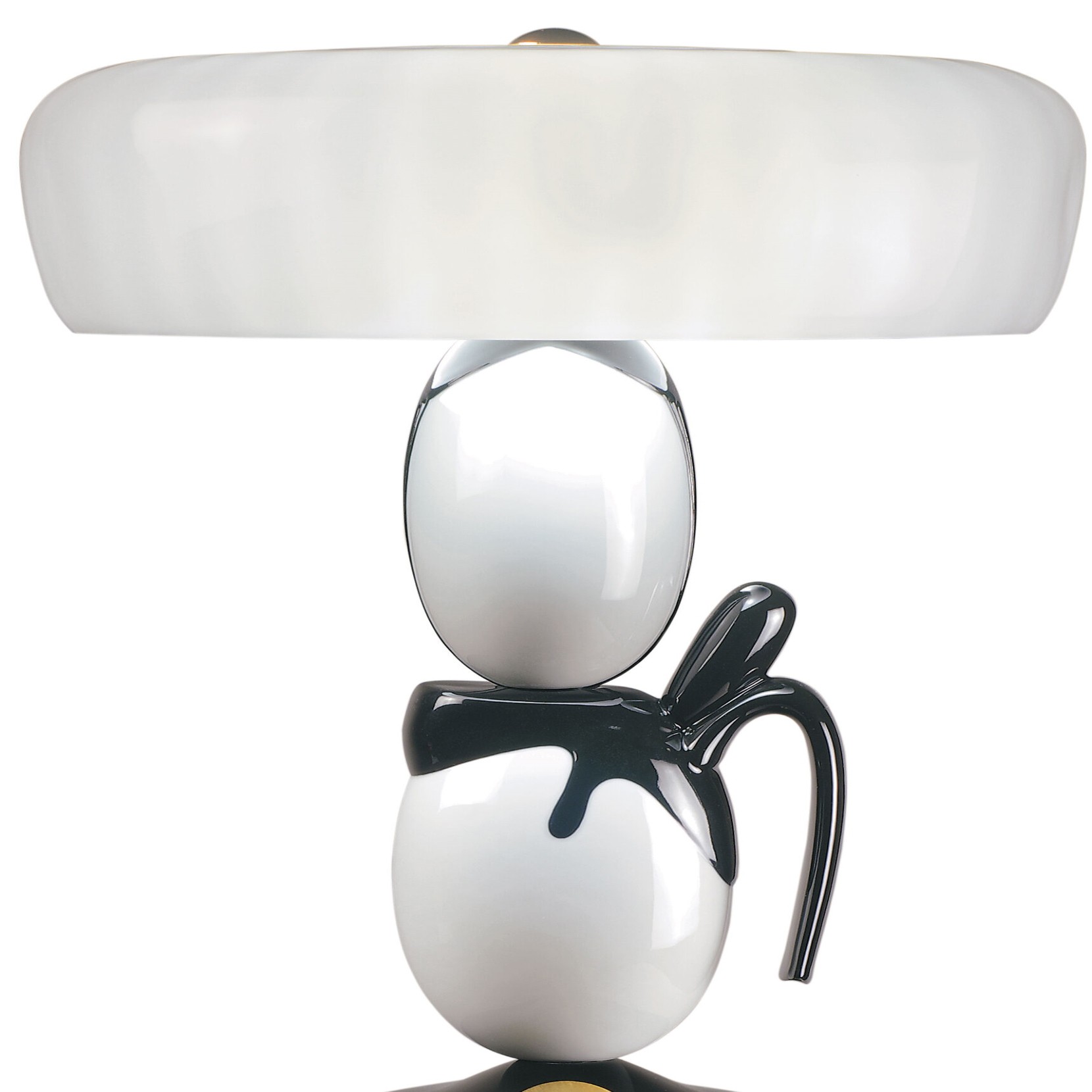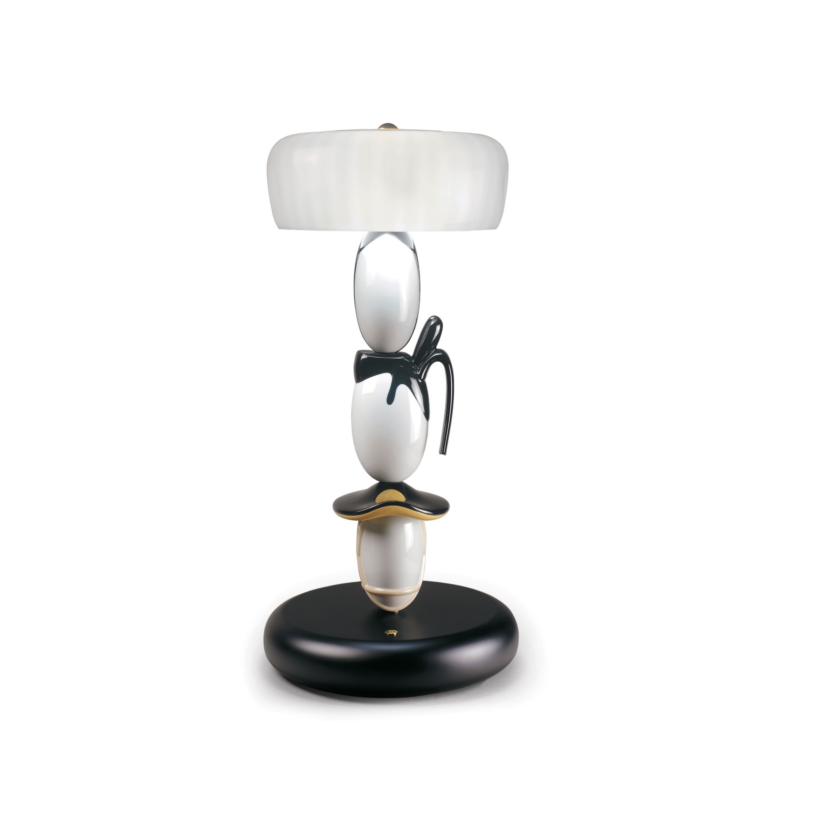 La collezione di lampade Hairstyle è stata ideata dal team di Lladró Atelier, il laboratorio di idee del marchio, in collaborazione con il designer giapponese Hisakazu Shimizu. Sono ispirati a personaggi storici giapponesi che dettano le tendenze per le loro favolose acconciature. Decorato in bianco e nero con tocchi di lucentezza dorata, gli schermi hanno soffiato in vetro di Murano in diversi strati che si ispirano i cappelli sandogasa"", utilizzati in Giappone medievale per la protezione solare durante i lunghi viaggi. La base è in legno laccato nero satinato.