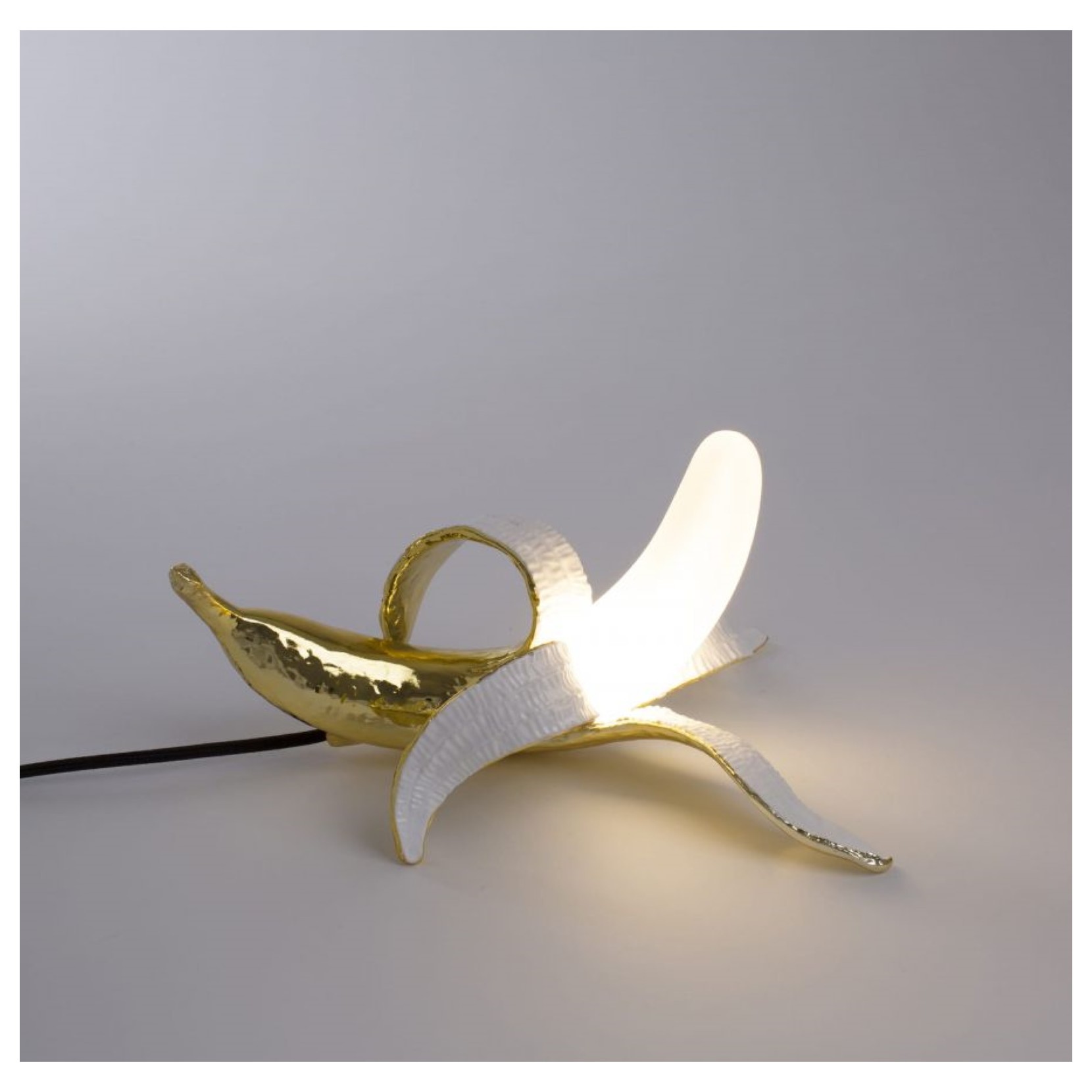 La lampada da tavolo BANANA disegnata da Studio Job rappresenta l'essenza della creatività stravagante, proposta in due diverse colorazioni bronzo lucido e giallo "banana".