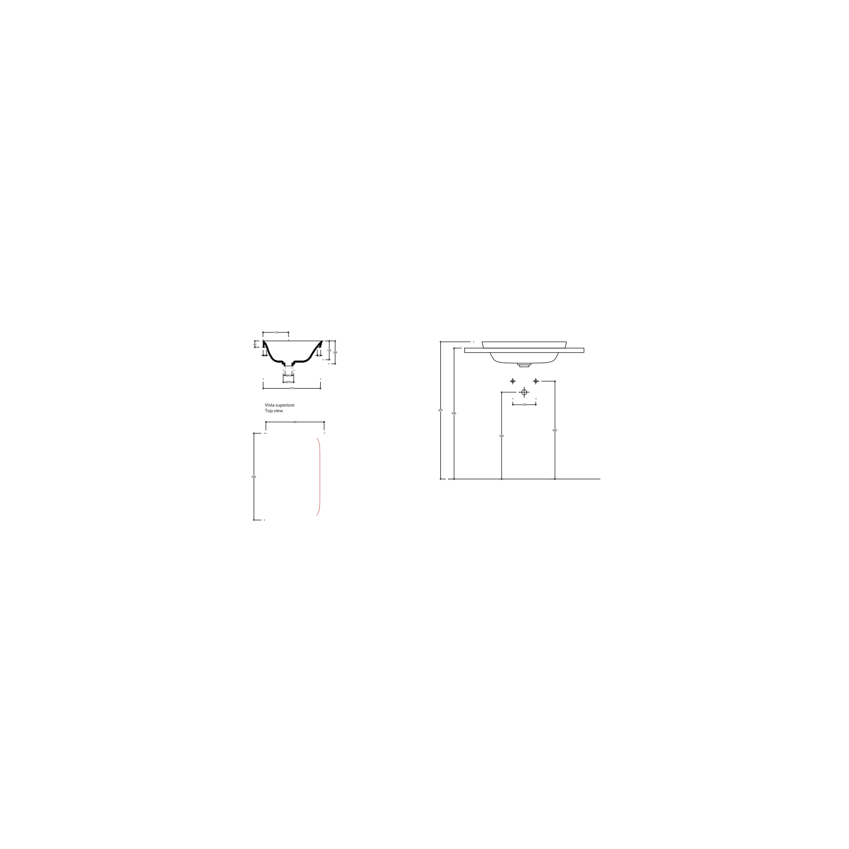 VALDAMA Soul - Lavabo in ceramica da incasso 55 x 38 h4