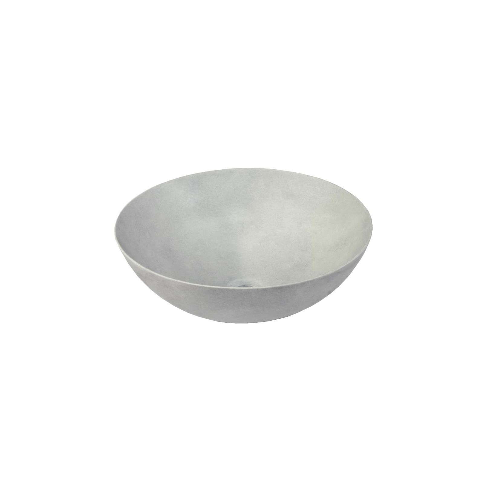 Lavabo in porcellana effetto cemento, dipinto a mano, con diametro di 40 cm e altezza di 15 cm. Abbinato alle piastrelle BERLIN, ne richiama il colore e la finitura delicata, con un aspetto cemento leggermente sfumato.