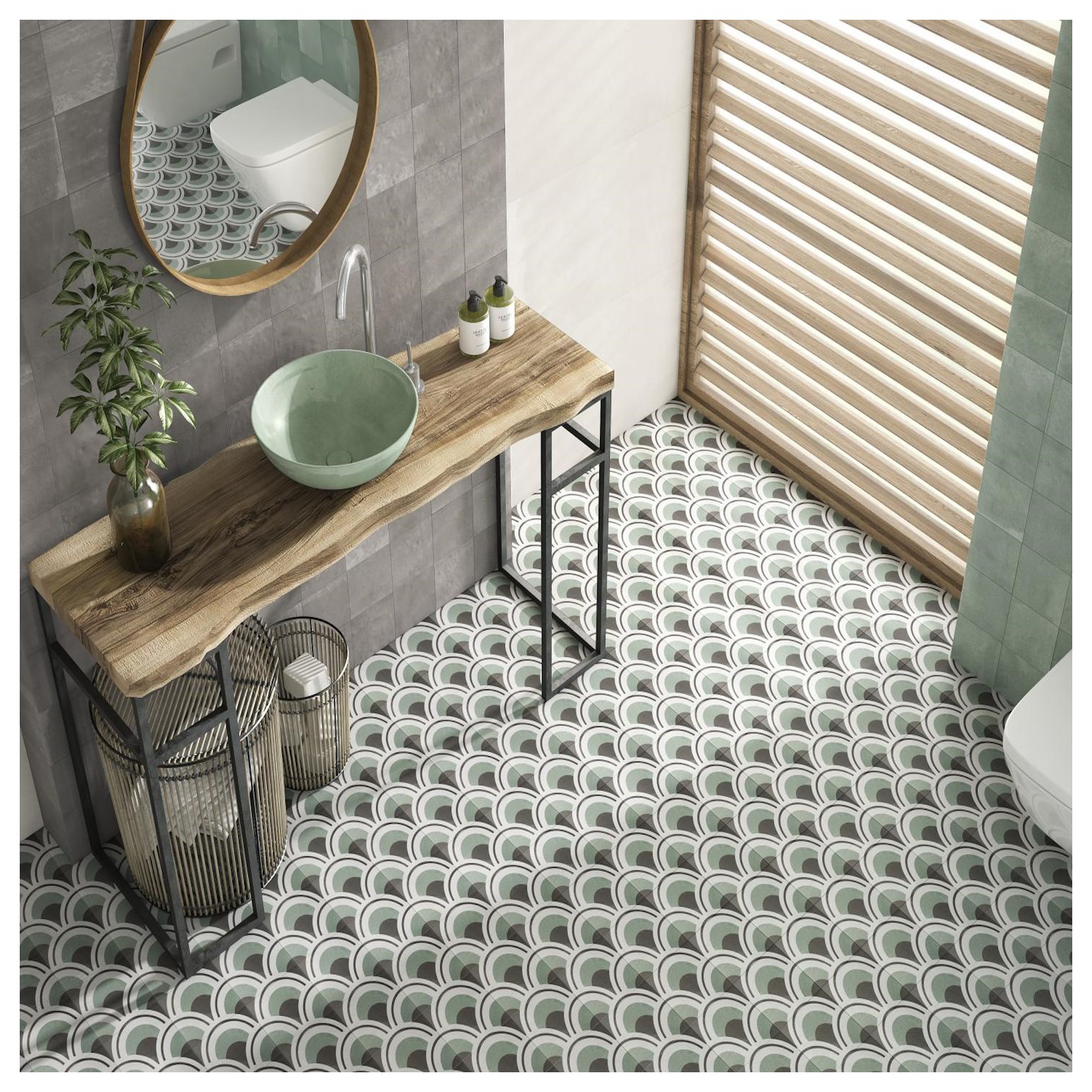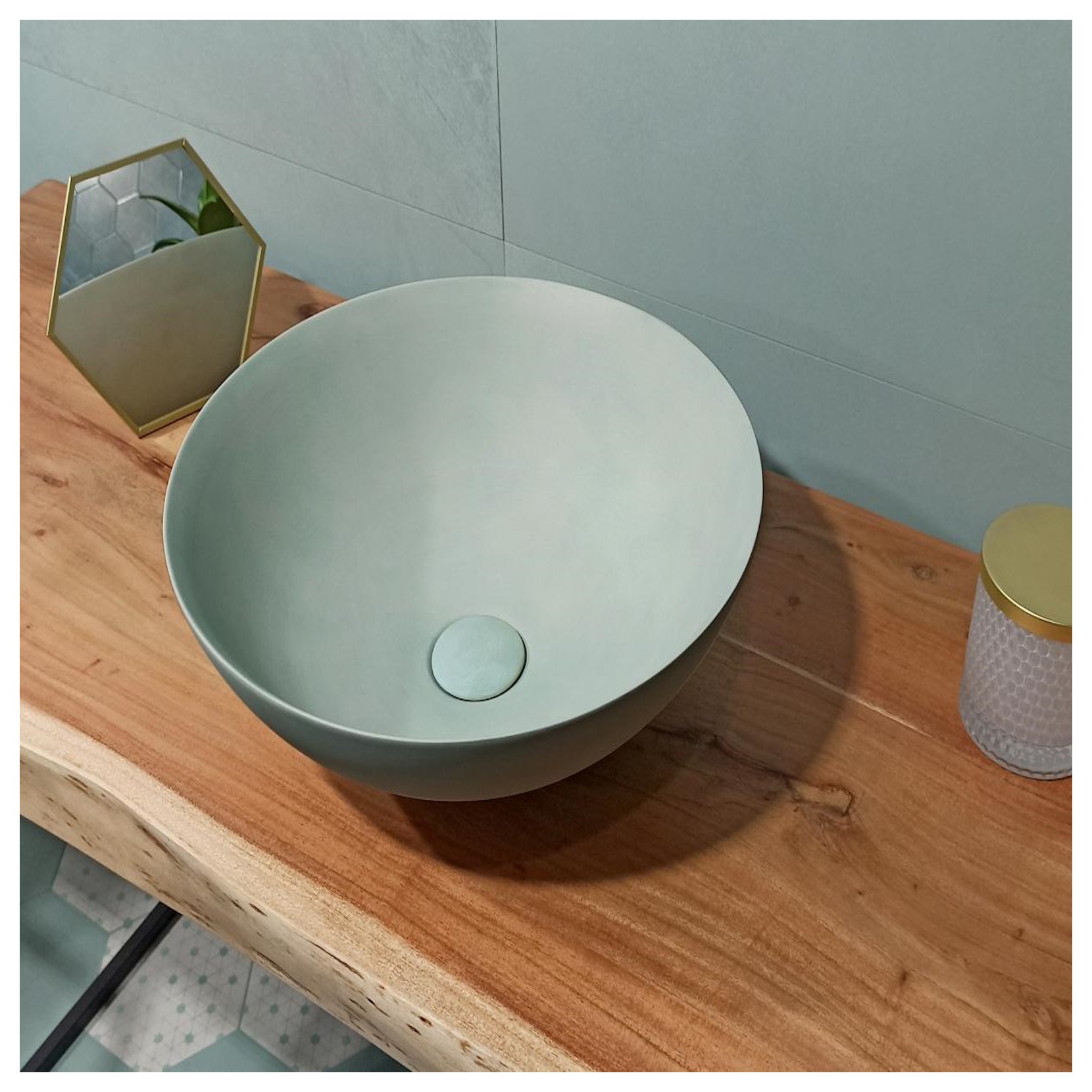 Lavabo in porcellana effetto cemento, dipinto a mano, con diametro di 40 cm e altezza di 15 cm. In tinta con le piastrelle BERLIN, si distingue per la superficie delicata e leffetto cemento chiaro e leggermente sfumato.