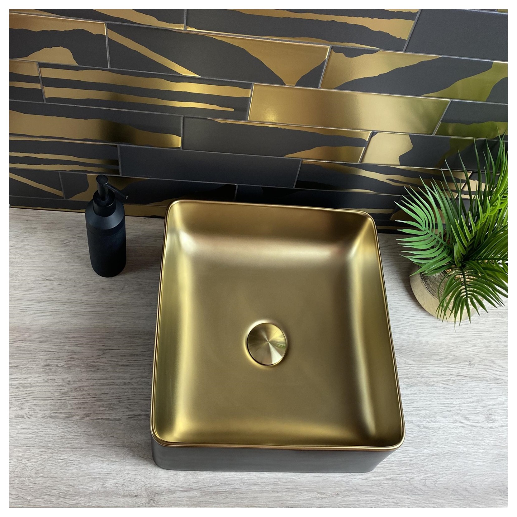 DUNE - Lavabo SAVANNAH Nero e Oro 36.5x36.5x13