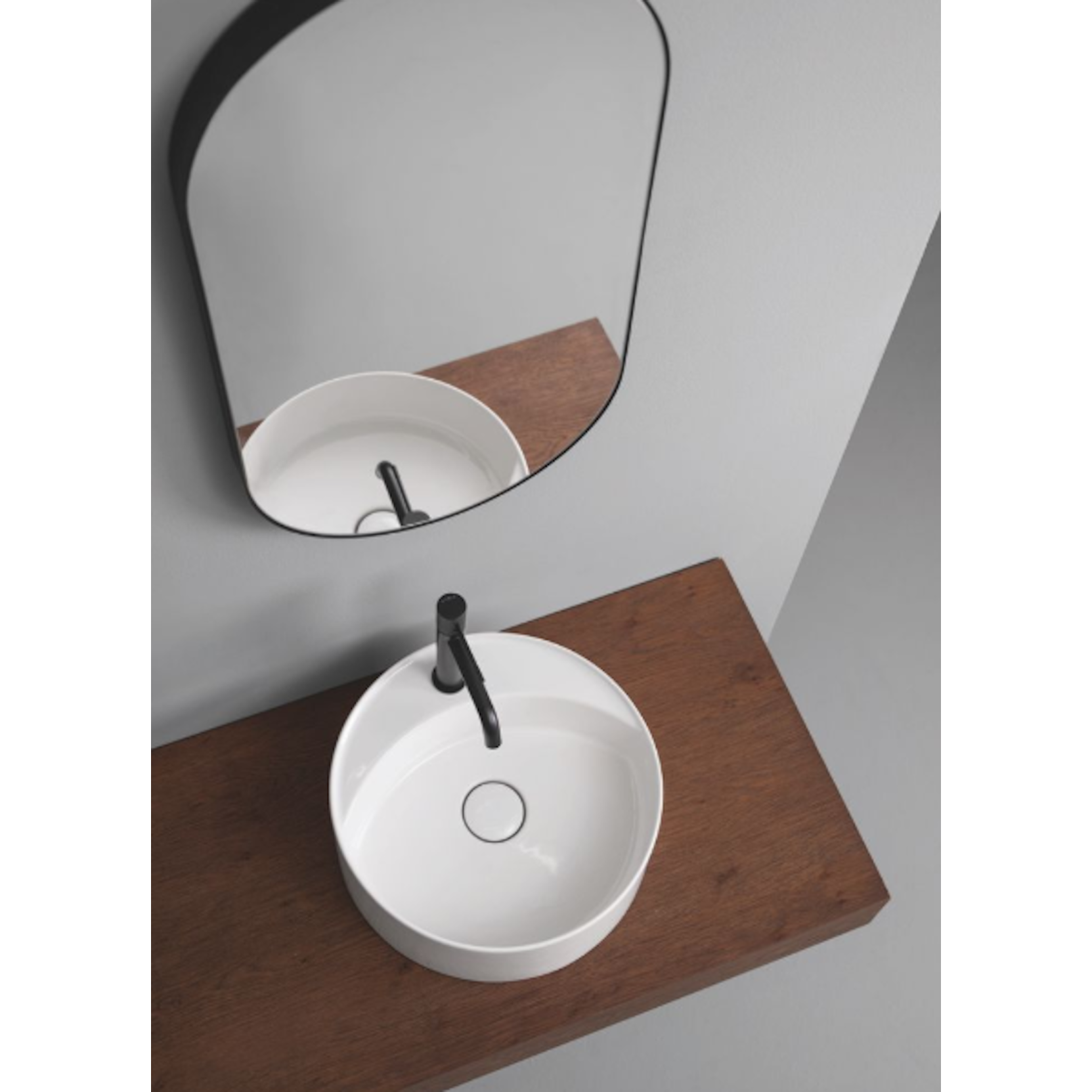 La collezione Mate si arricchisce di un nuovo lavabo tondo da 40 cm, più funzionale grazie al piano integrato per la rubinetteria, che ne semplifica installazione e utilizzo. La piletta piatta integrata valorizza il design essenziale e distintivo.