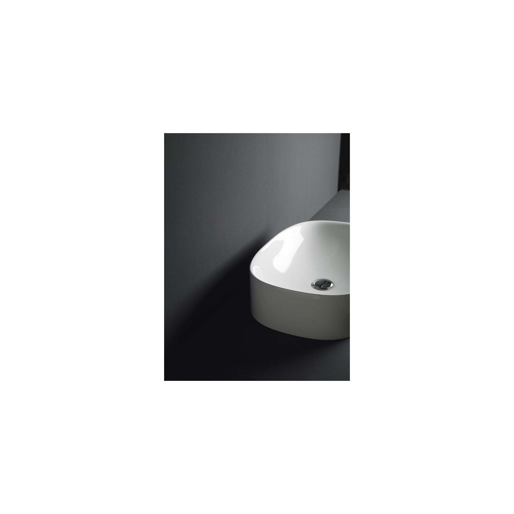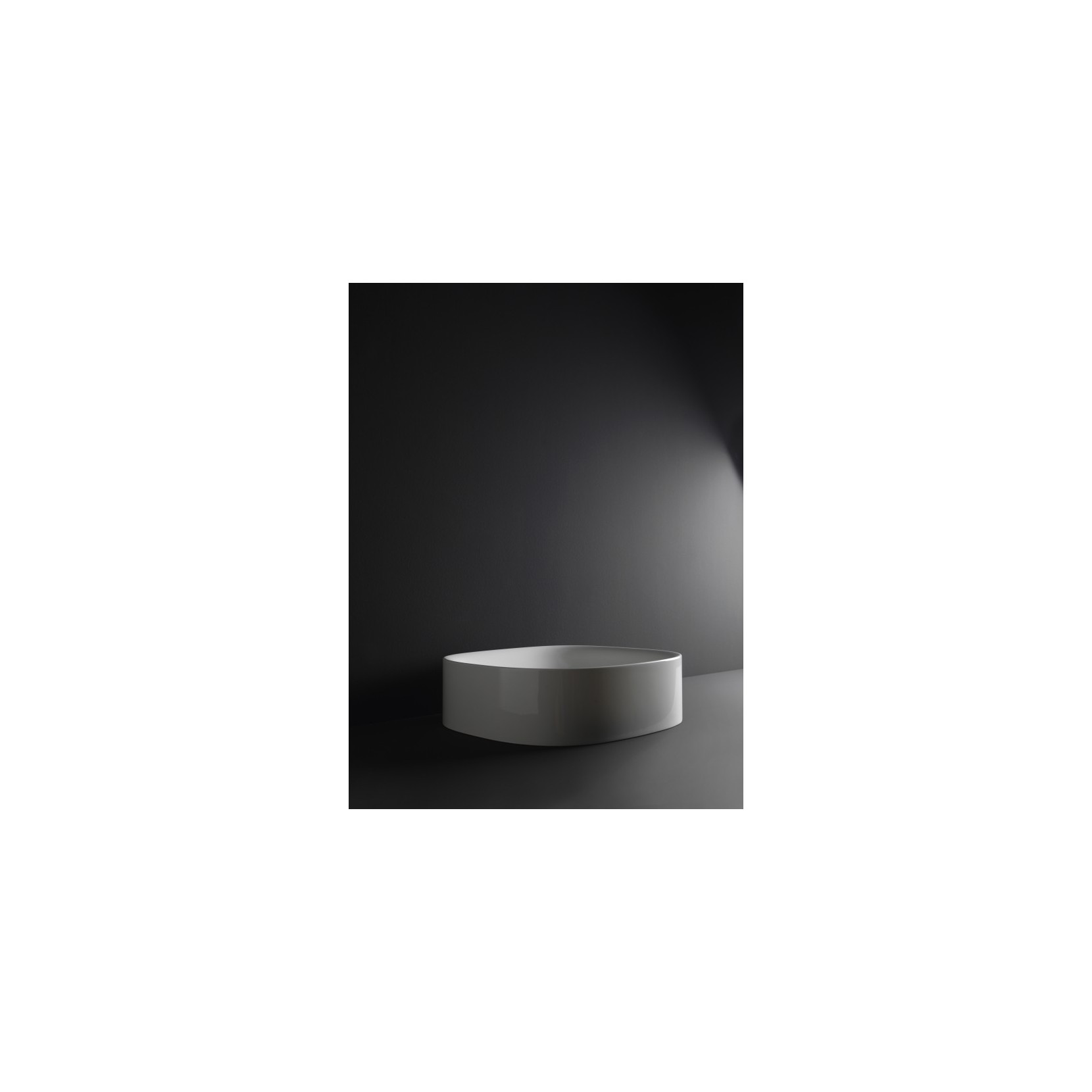 Lavabo d'appoggio in ceramica bianco lucido.