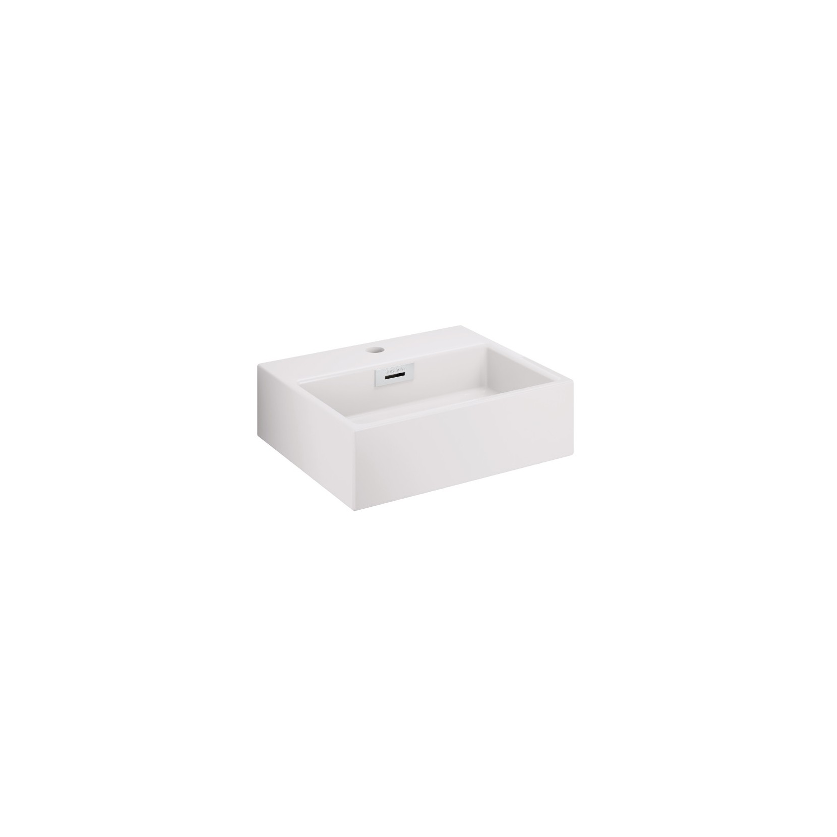 Lavabo d'appoggio in ceramica con foro per rubinetto, senza piletta.