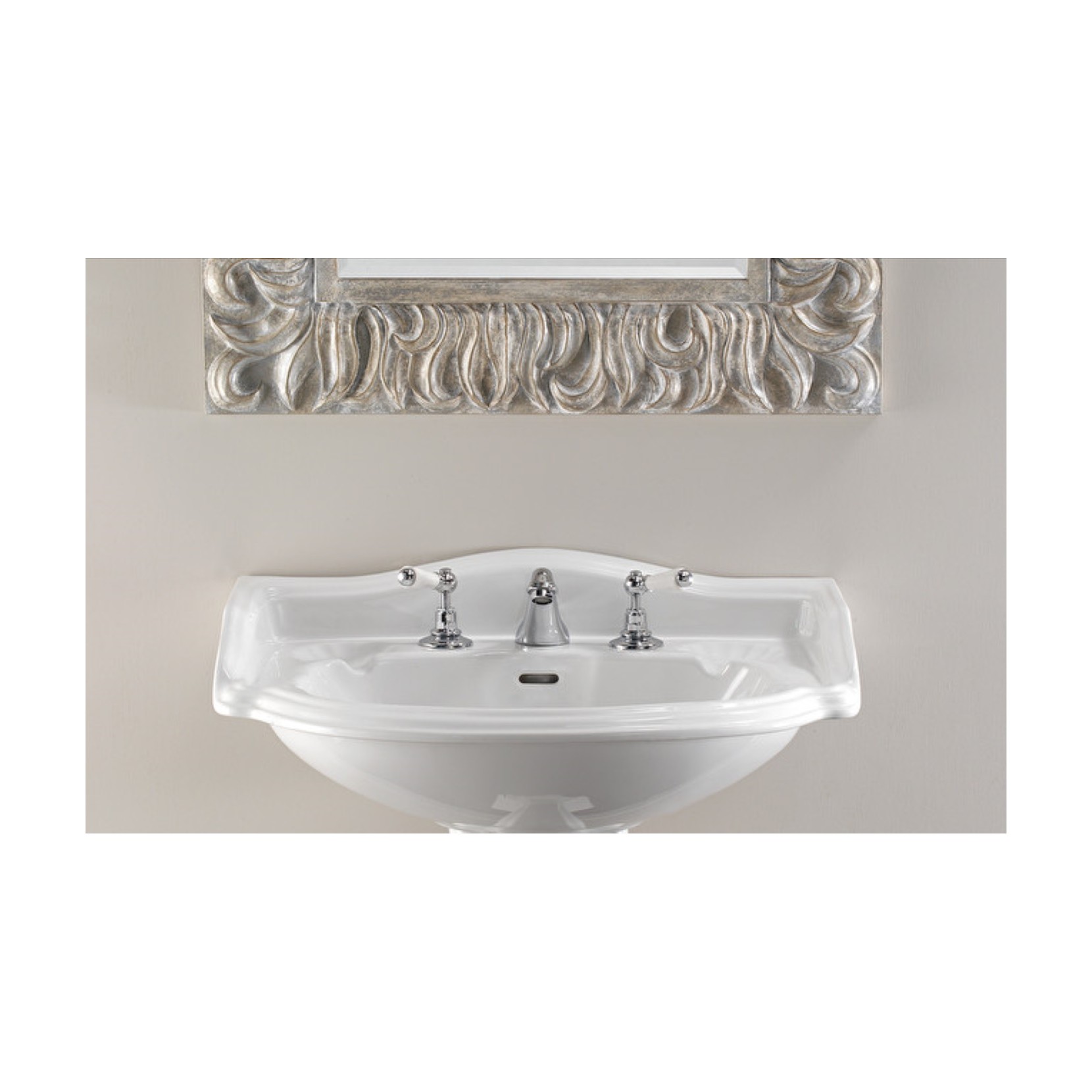 Devon&Devon propone un delicato lavabo Oxford in ceramica bianca, di ispirazione classica e dalle forme morbide e sinuose, con uno, due o tre fori.