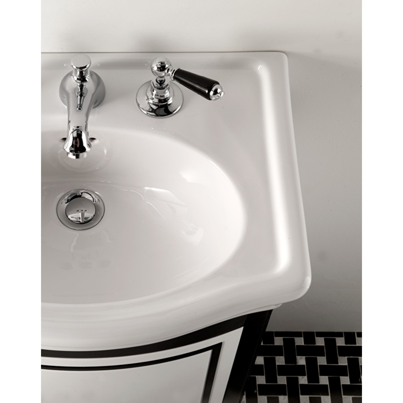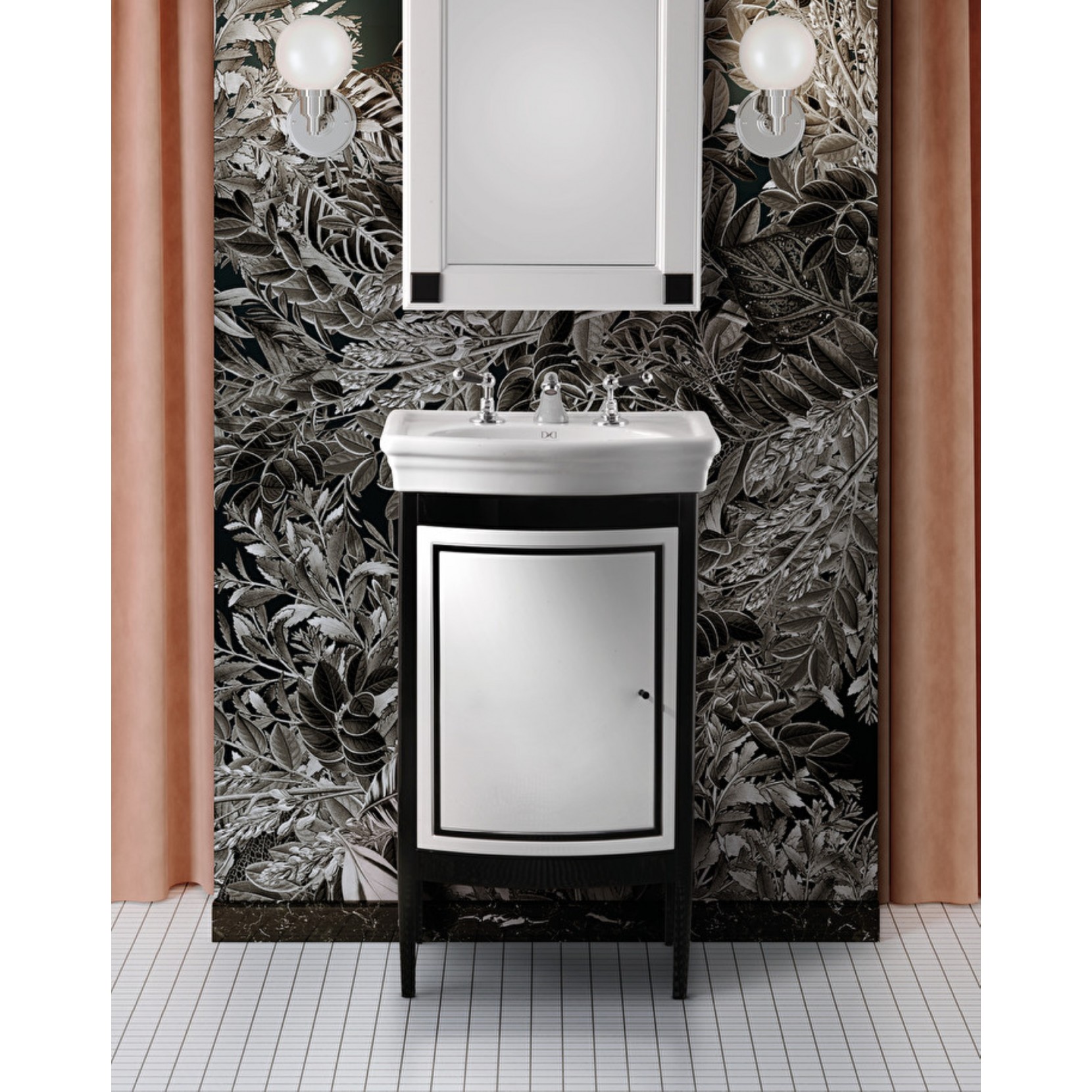 Harry Junior è un piccolo portalavabo di grande carattere, ispirato alla più classica tradizione anglosassone, rielaborata all'insegna della praticità. La base in legno con anta singola scorniciata con profili a contrato che esaltano la sinuosita delle forme del mobile.