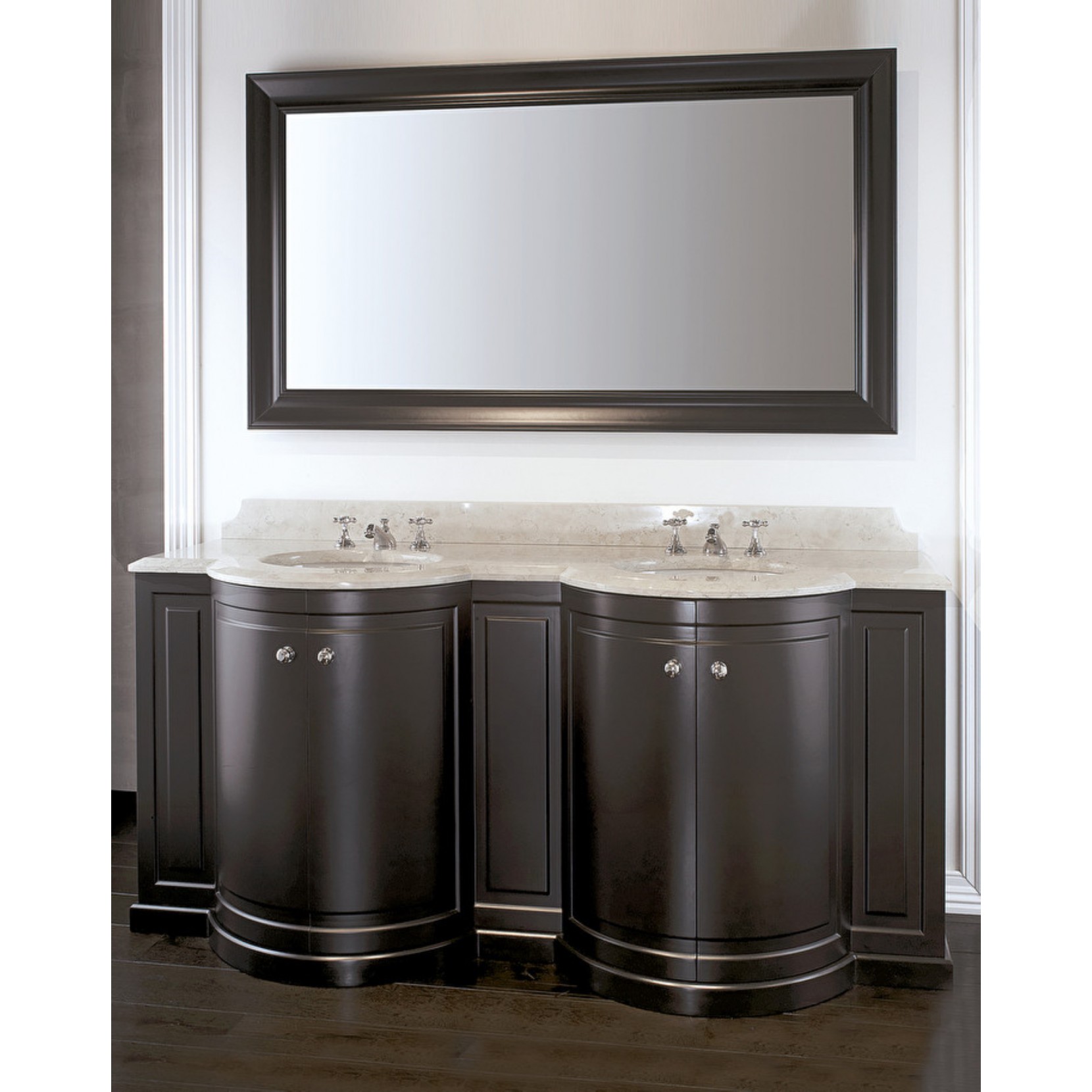 REGENT è il mobile portalavabo in stile neoclassico dal gusto elegante, caratterizzato da una sinuosa struttura in legno laccato che supporta un prezioso top in marmo Bianco Carrara, Nero Marquinha, Botticino Fiorito e Bianco Afyon. La base e le ante curve sono disponibili nei colori: Dark Grey, Off White, Warm Grey.