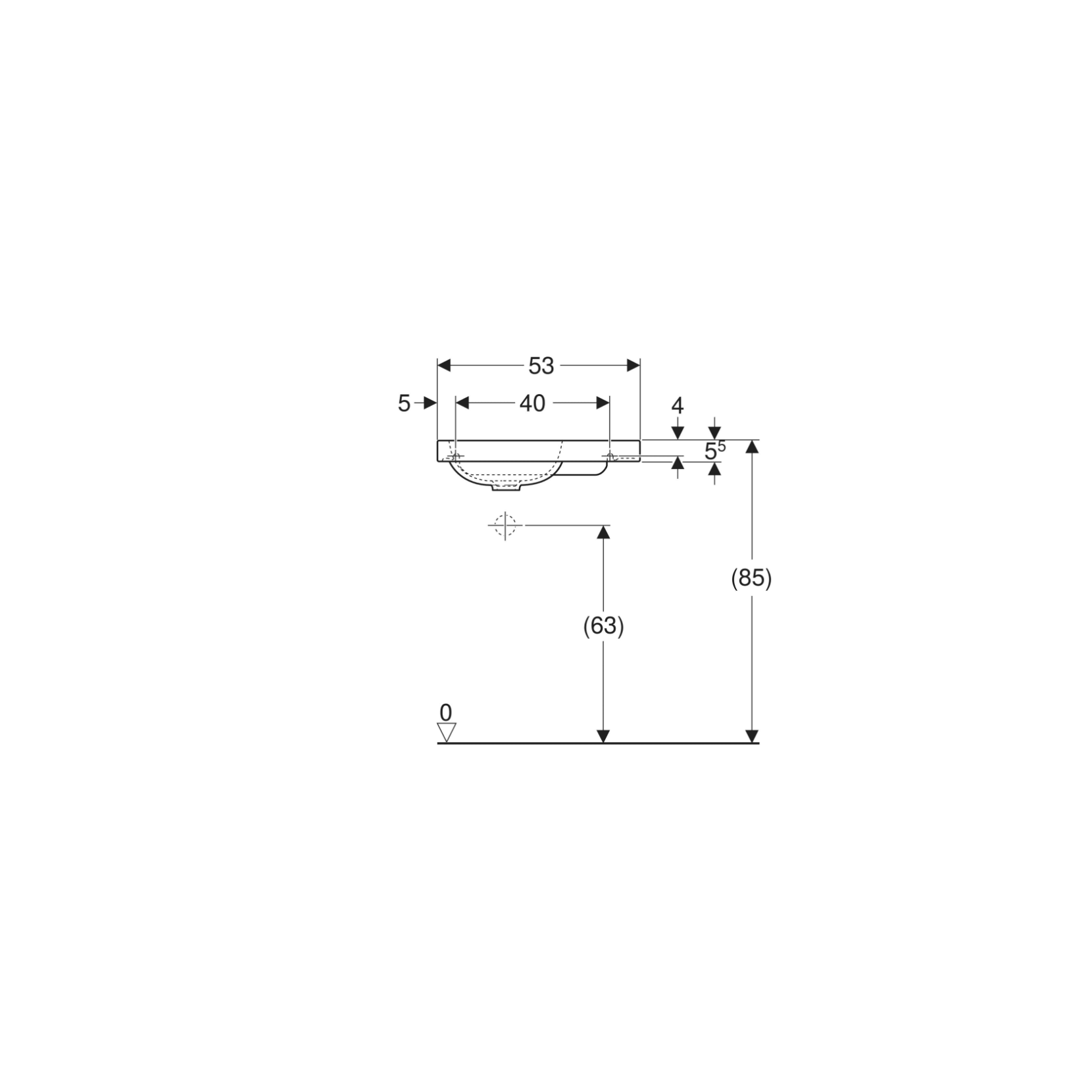 Geberit iCon, Lavamani con ripiano asimmetrico a destra 53 cm SFR