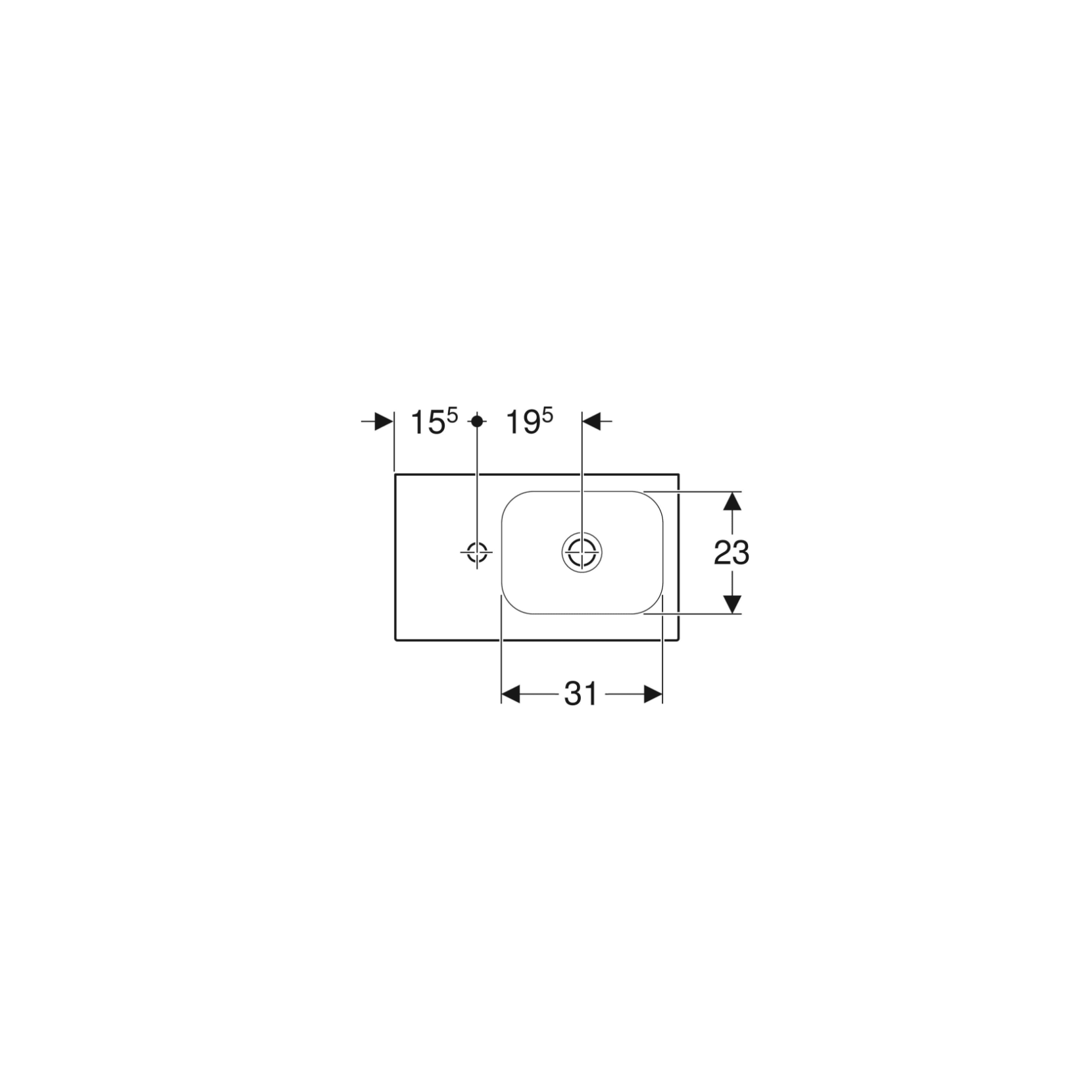 Geberit iCon, Lavamani con ripiano 53 cm asimmetrico a sinistra con foro