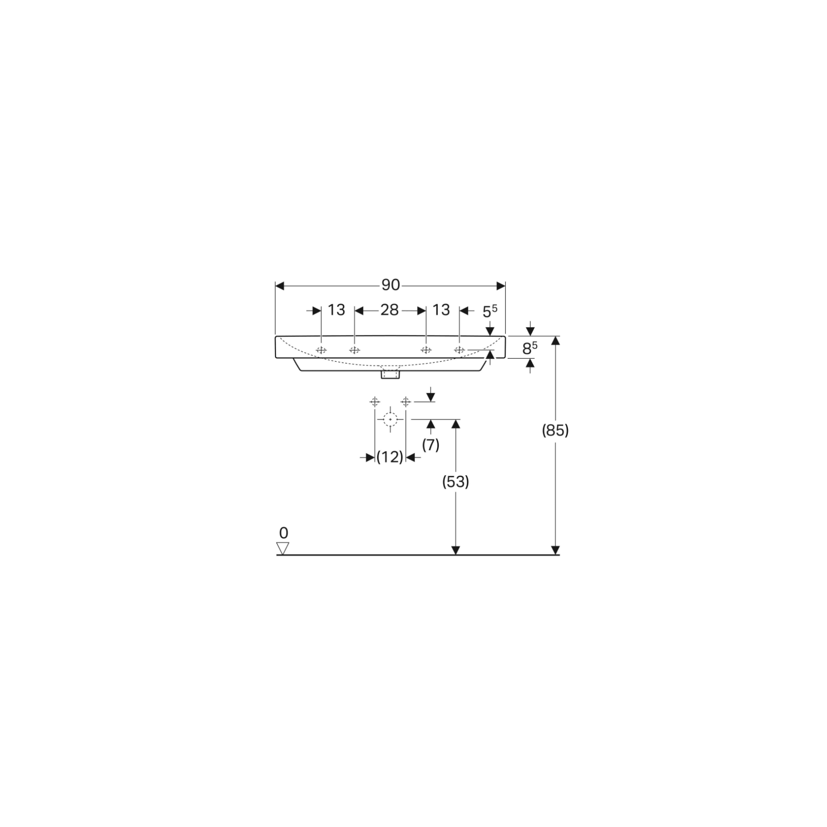 Geberit Smyle cm 90, Lavabo rettangolare senza foro rubinetteria