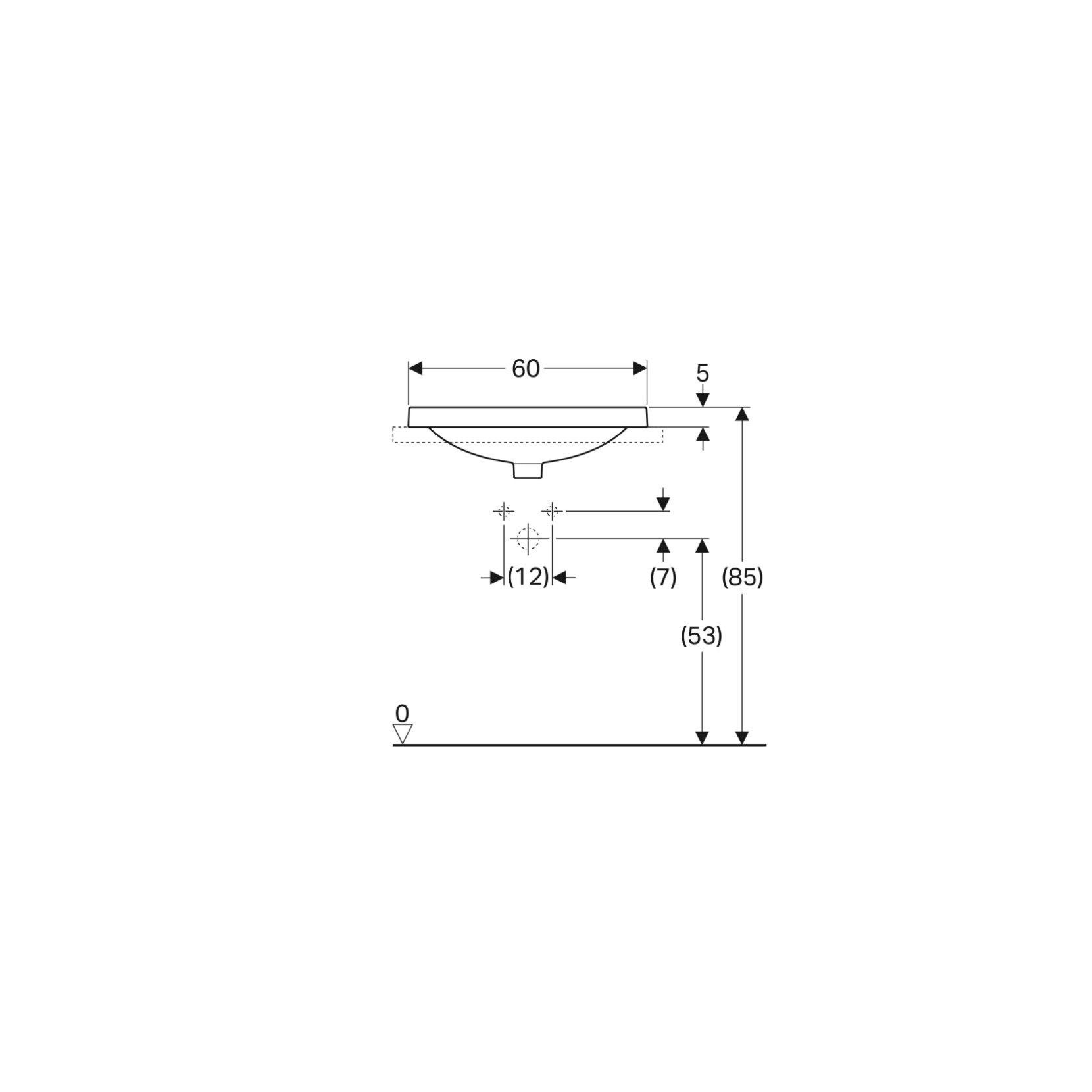 Geberit Variform In Set, Lavabo soprapiano semi-incasso ellittico con foro 60x40