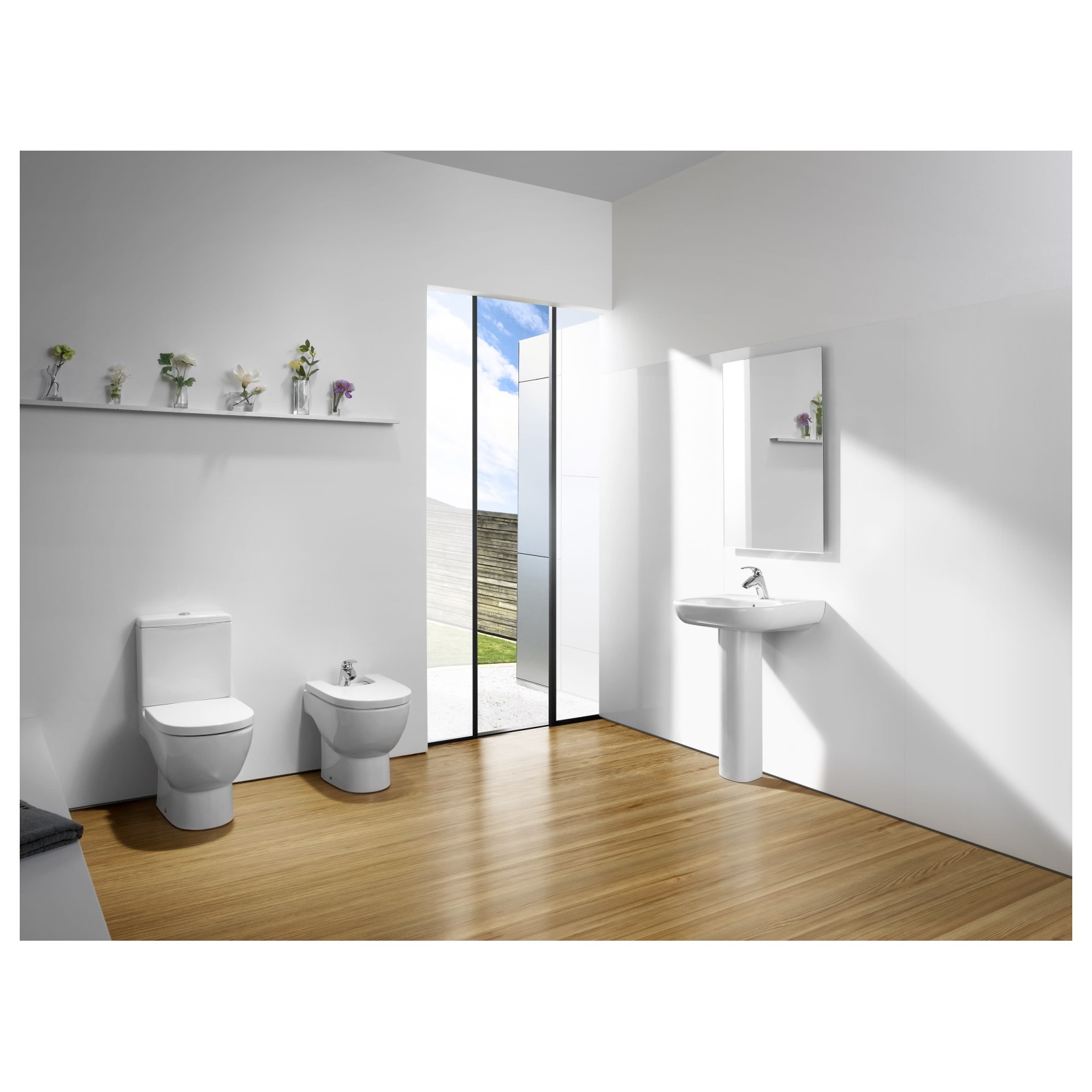 Roca propone la serie MERIDIAN la gamma più versatile, un solo concetto per mille soluzioni ed ogni esigenza. Lavabo a muro in porcellana bianca con set di fissaggio incluso.
