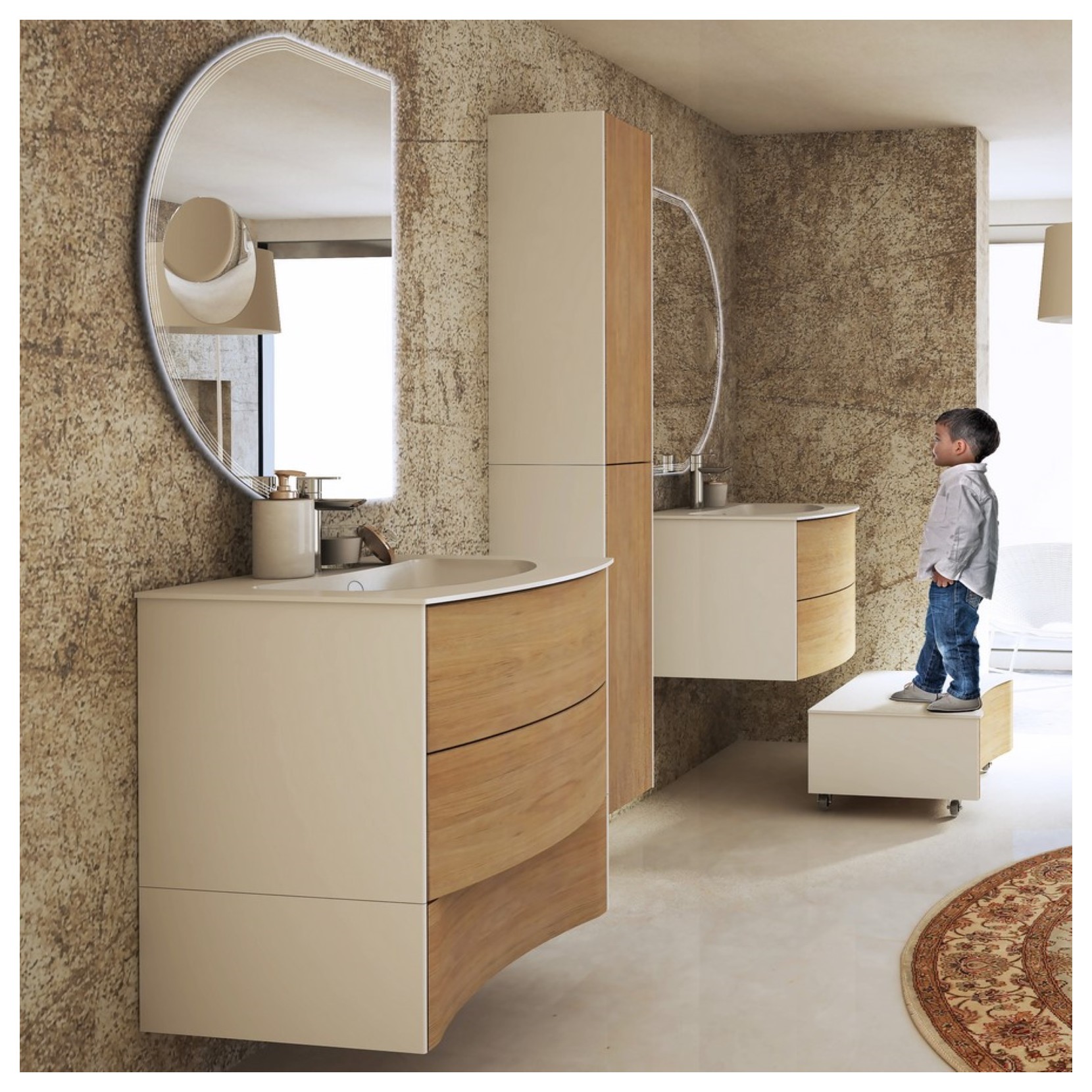 La linea Soho è disponibile in tre eleganti finiture rovere tabacco, rovere sbiancato e bianco opaco. I cassetti sono dotati di guide BLUM con spondine in vetro e di un sistema di apertura push e di chiusura soft motion. La linea si caratterizza per lavabi integrati e fianchi in solid surface. Per completare la soluzione di arredo, Soho si arricchisce anche di pensili e di una versatile cassettiera mobile, provvista di ruote.