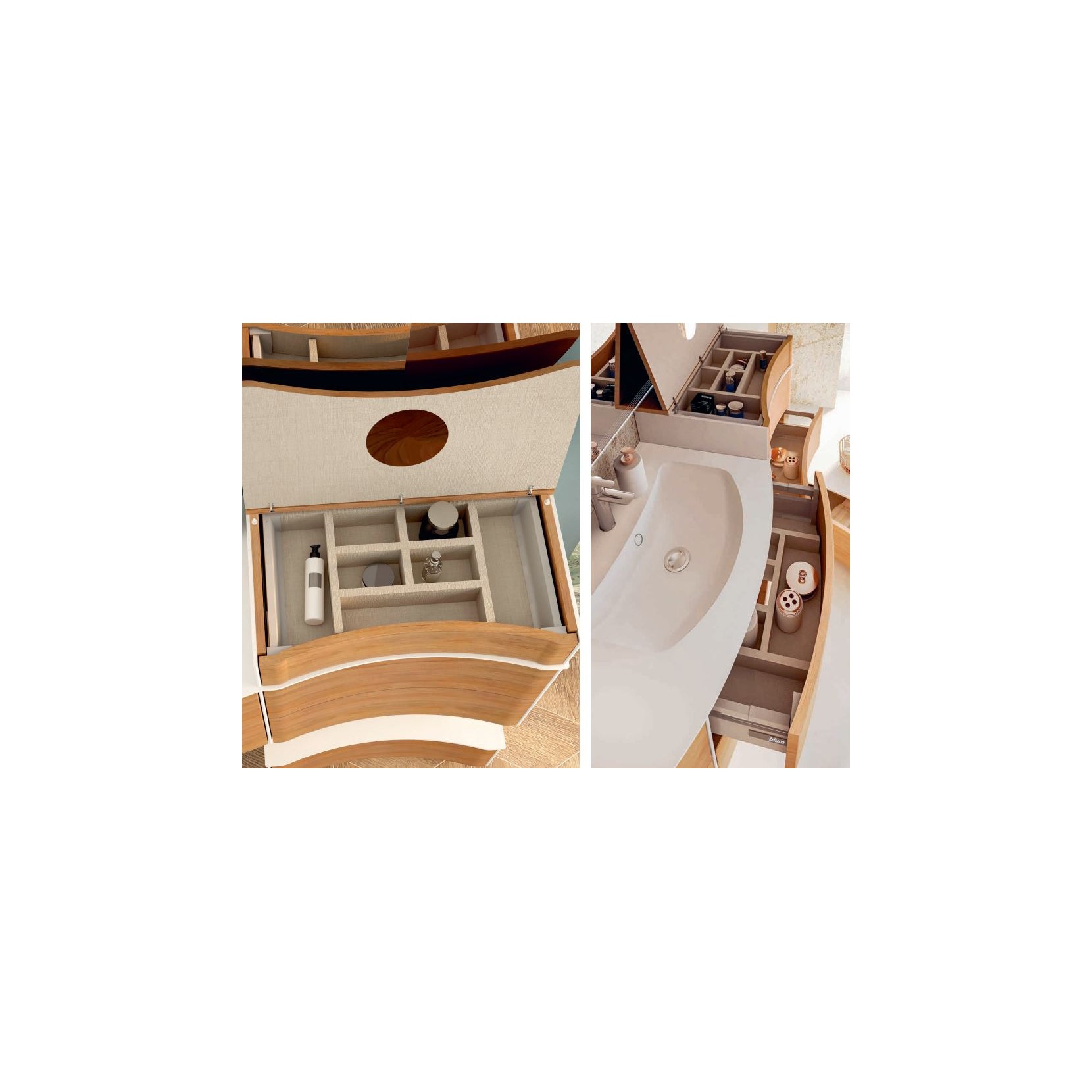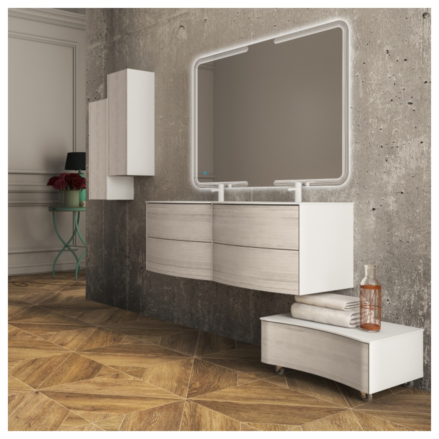 La linea Soho è disponibile in tre eleganti finiture rovere tabacco, rovere sbiancato e bianco opaco. I cassetti sono dotati di guide BLUM con spondine in vetro e di un sistema di apertura push e di chiusura soft motion. La linea si caratterizza per lavabi integrati e fianchi in solid surface. Per completare la soluzione di arredo, Soho si arricchisce anche di pensili e di una versatile cassettiera mobile, provvista di ruote.