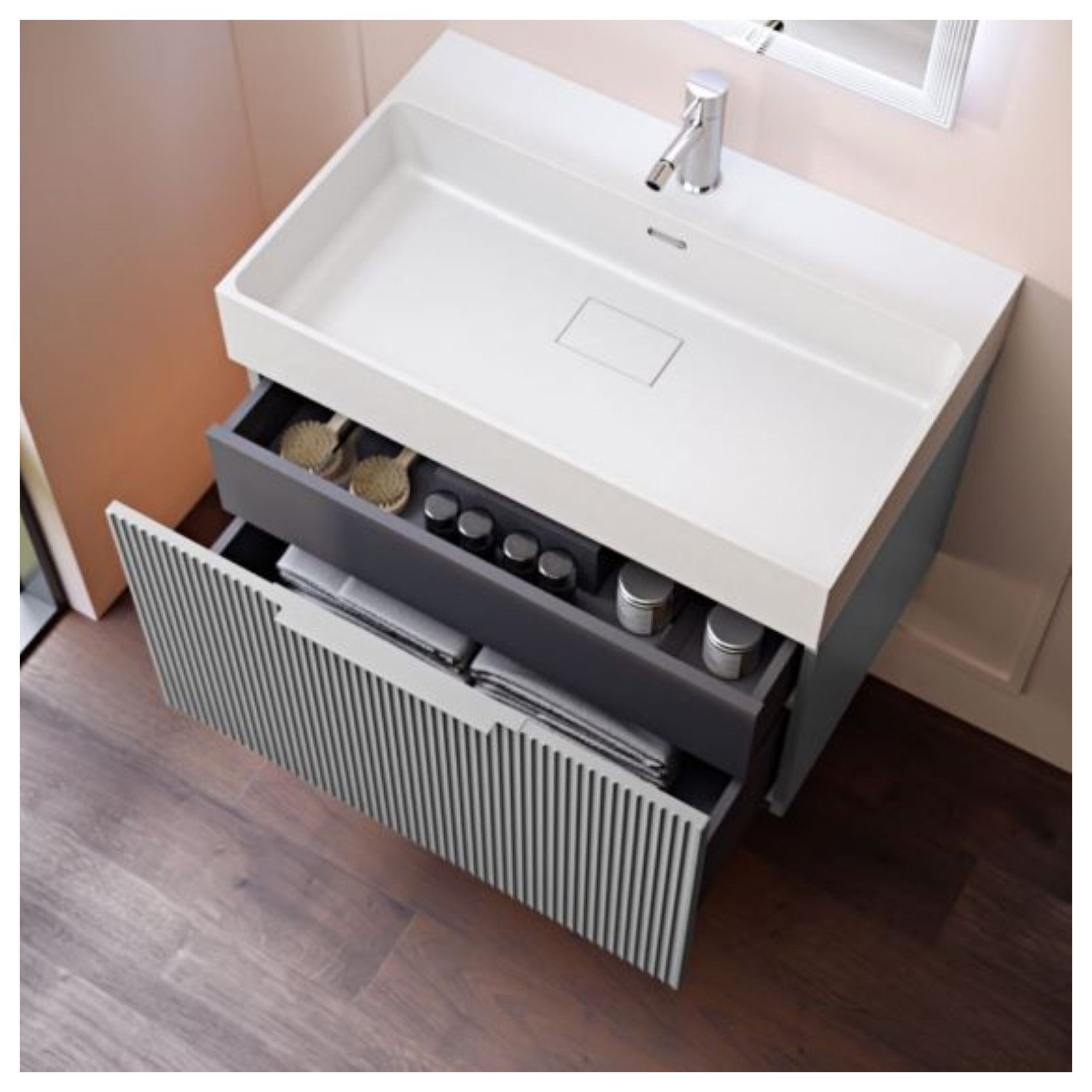 Design, ricerca tecnologica e materiali innovativi si fondono nella Collezione Premium dal design inedito e raffinato che punta alla personalizzazione e alla modularità dei suoi complementi.La Collezione Premium prevede la realizzazione di elementi da 50cm fino a 120cm da modulare in infinite combinazioni, anche in sovrapposizione, coordinati da lavabi in resina bianco opaco, anche su misura, in abbinamento a tutte le cassettiere, per soddisfare ogni esigenza abitativa e funzionale. I cassetti altamente contenitivi, a doppia altezza e con kit ruote opzionale, si vestono di frontali lisci o plissé corredati da eleganti maniglie a colore, interni scuri e guida slim nera con chiusura rallentata.