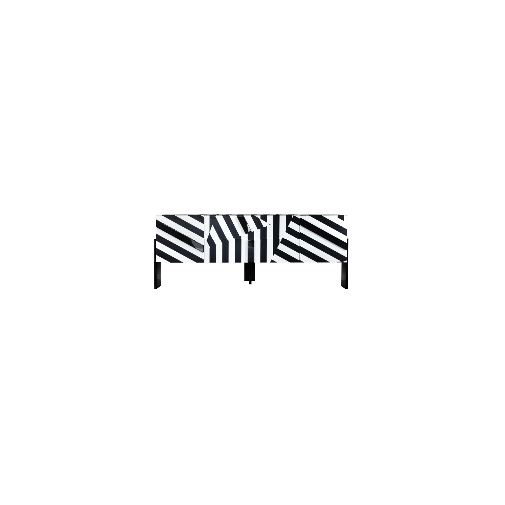 Versione geomatrica bianco nero con vano a giorno rosso e solo per la versione con cassettone maniglia colore nero sagomata secondo decoro. Uso solo interno.