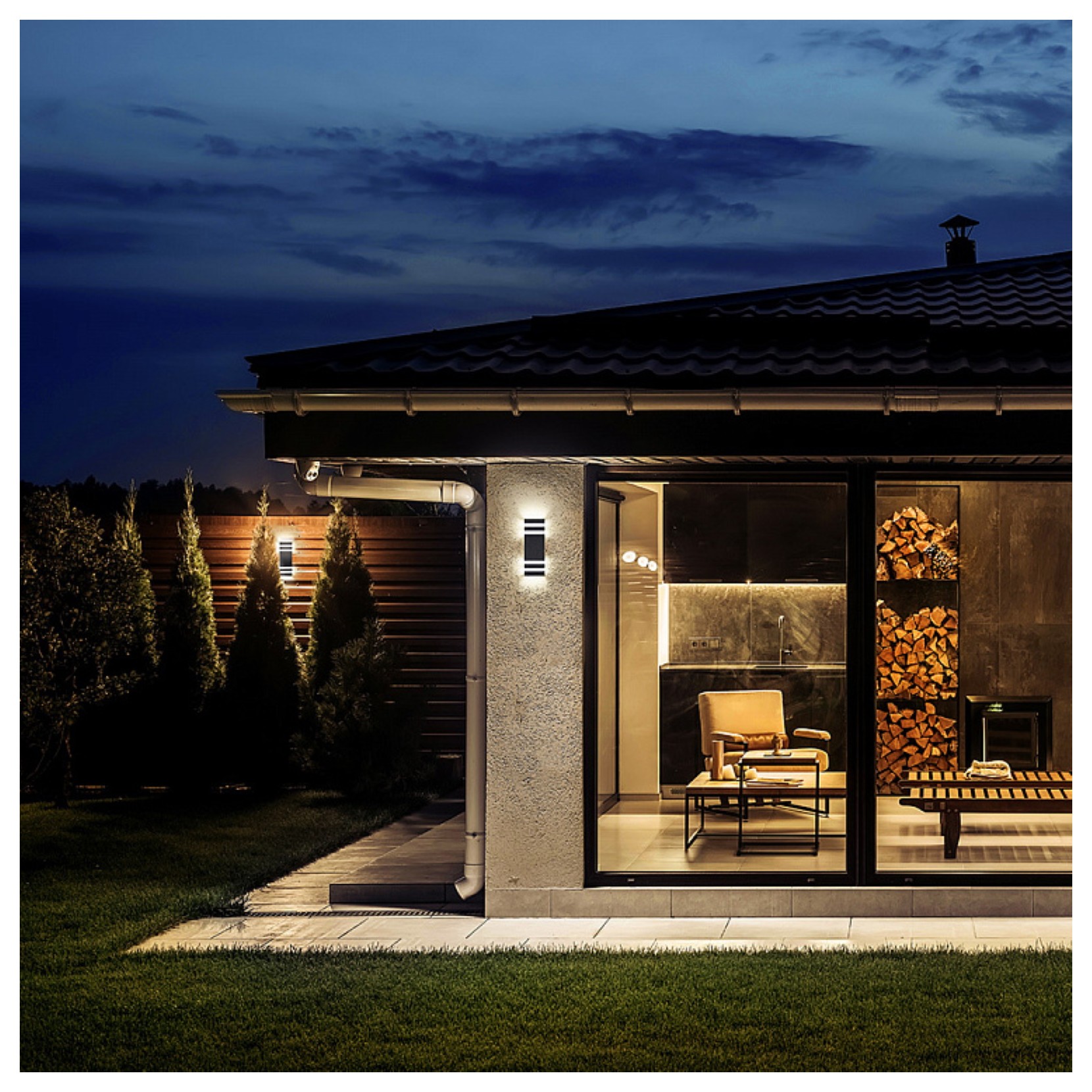 La lampada da parete per esterno Unter den Linden si compone di una struttura in metallo con inserti in plastica trasparente nel diffusore sia nella parte superiore che inferiore. La struttura è composta da un motivo decoratico a righe. Unter den Linden è resistente alle variazioni di temperature e alla corrosione.