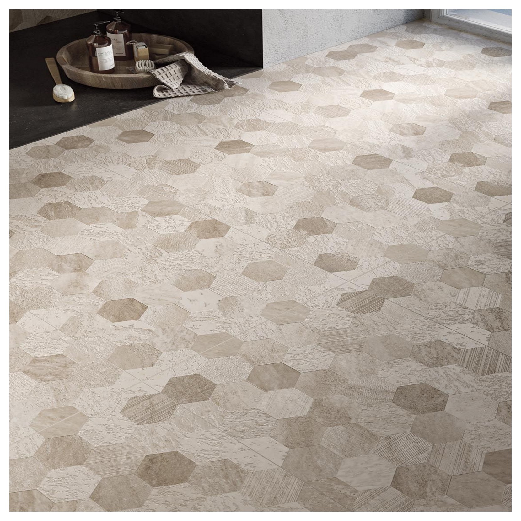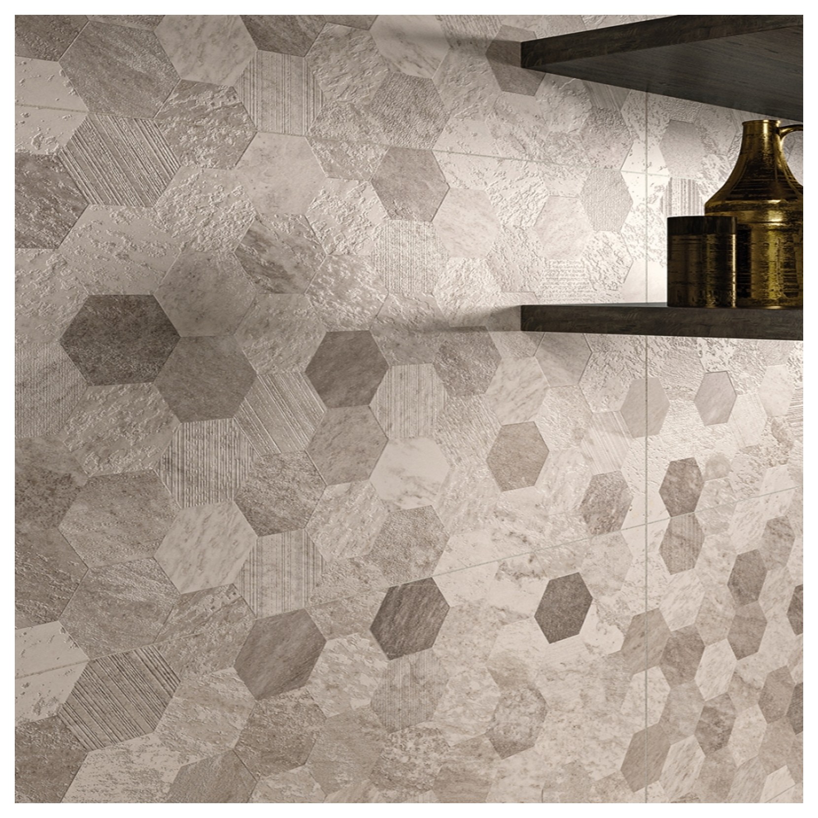 La Collezione Evoluta evidenzia un forte legame con la natura in tutta la sua essenza. Evoluta si ispira alle rocce metamorfiche italiane, rielaborata in gradazione contemporanea con una superfice tridimensionale.