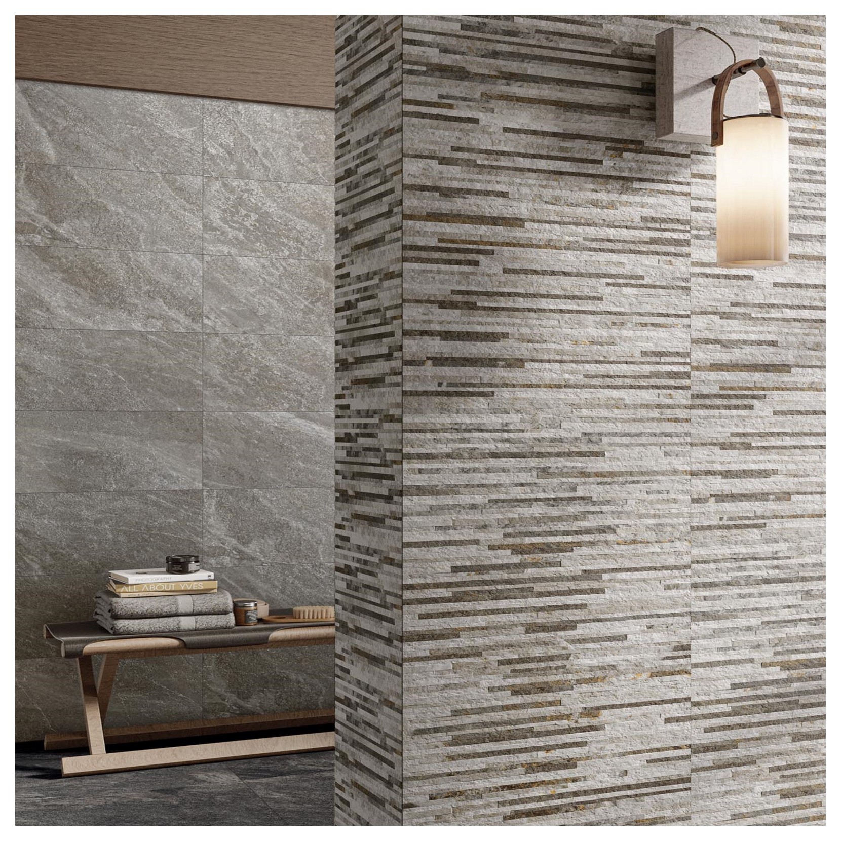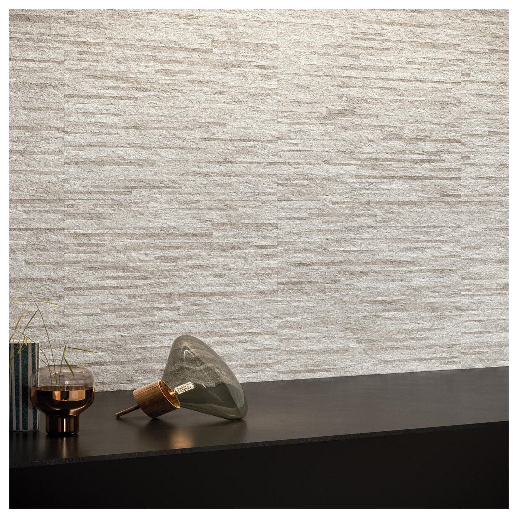 La Collezione Evoluta evidenzia un forte legame con la natura in tutta la sua essenza. Evoluta si ispira alle rocce metamorfiche italiane, rielaborata in gradazione contemporanea con una superfice tridimensionale.