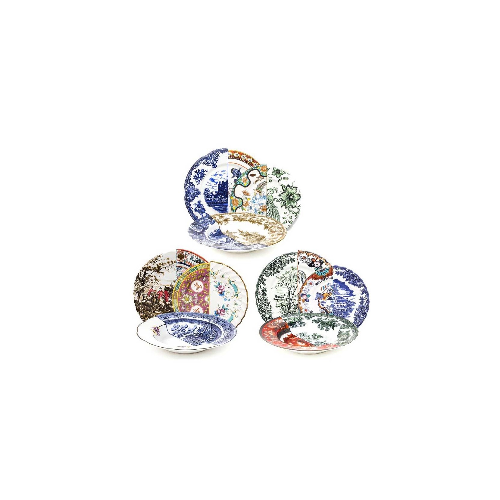 La collezione di piatti HYBRID vede la combinazione di tradizione e modernità delle stile Orientale ed Occidentale. I piatti fondi, piani da dessert o frutta, ideale per ogni occasione si adattano a qualsiasi stile questo perché il suo designer CTRLZAK si contraddistingue per l'unione di motivi, colori brillanti e cangianti. La cose che però rende questa serie particolare è la separazione grafica delle due parti della superfice ma che consolida la loro singolare unione.