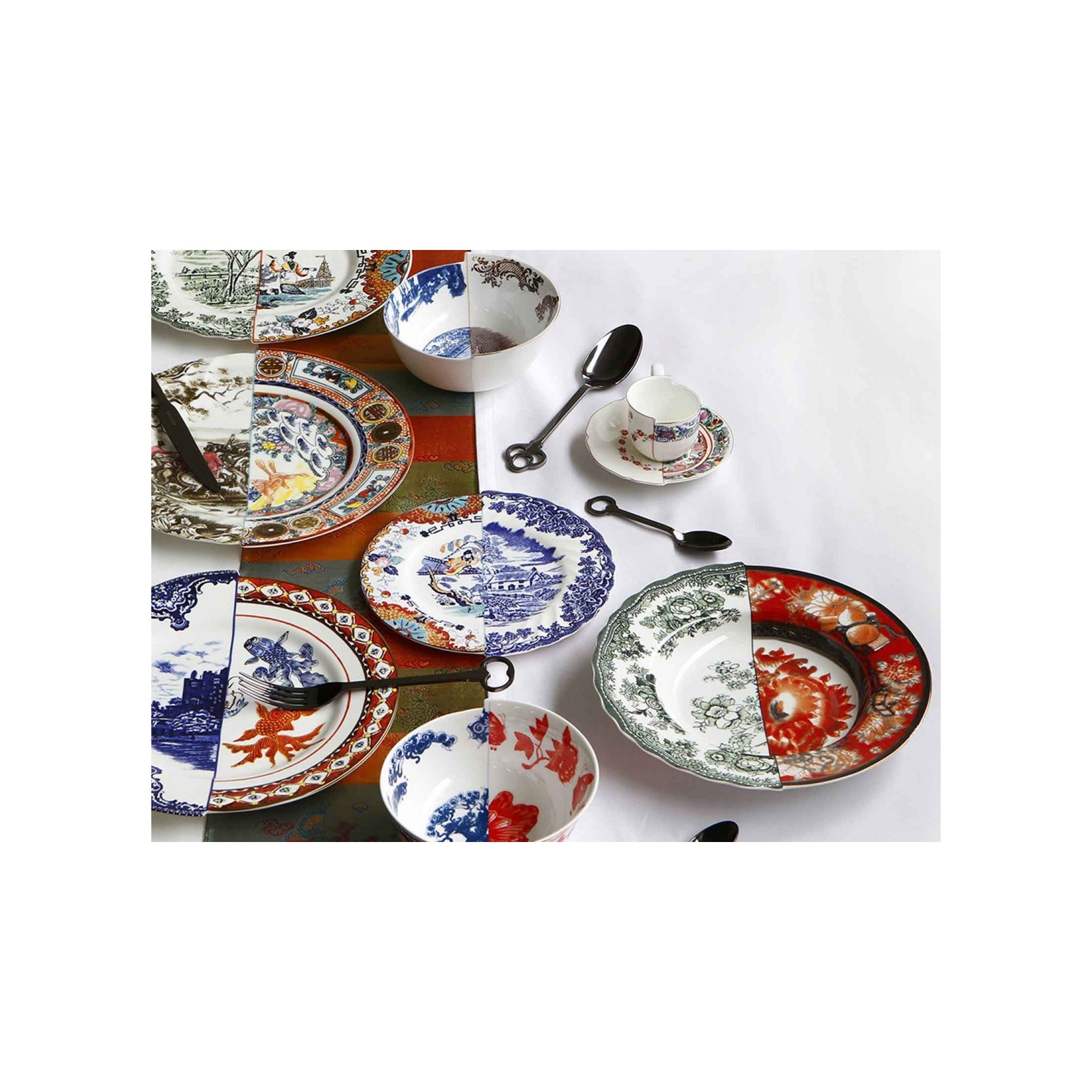 La collezione di piatti HYBRID vede la combinazione di tradizione e modernità delle stile Orientale ed Occidentale. I piatti fondi, piani da dessert o frutta, ideale per ogni occasione si adattano a qualsiasi stile questo perché il suo designer CTRLZAK si contraddistingue per l'unione di motivi, colori brillanti e cangianti. La cose che però rende questa serie particolare è la separazione grafica delle due parti della superfice ma che consolida la loro singolare unione.