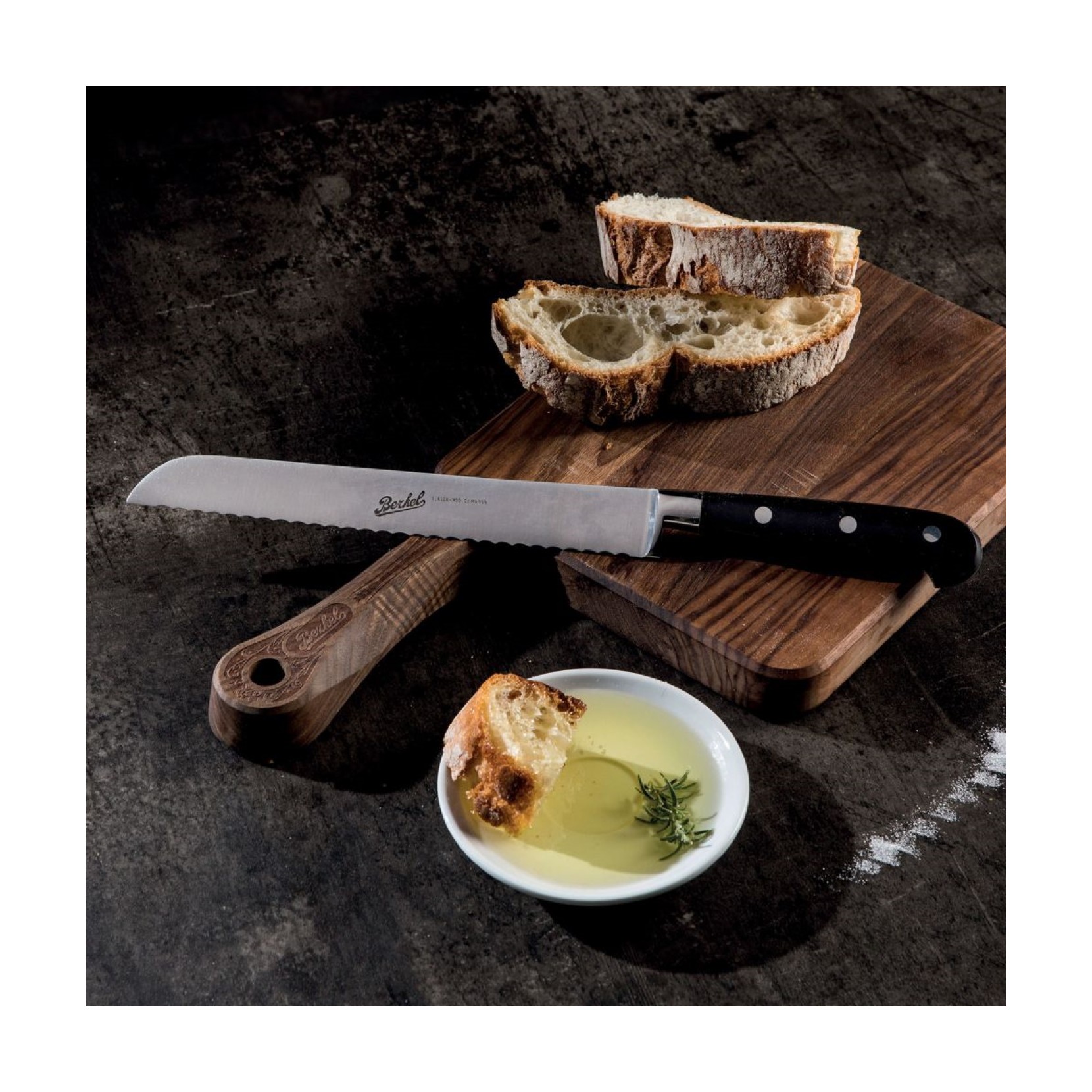 Il coltello Pane della serie ADHOC, rigido e maneggevole grazie alla lama dentata permette di affettare pane a costra morbida o dura. Il coltello si presta bene anche alla pezzatura di grandi e media dimensione.