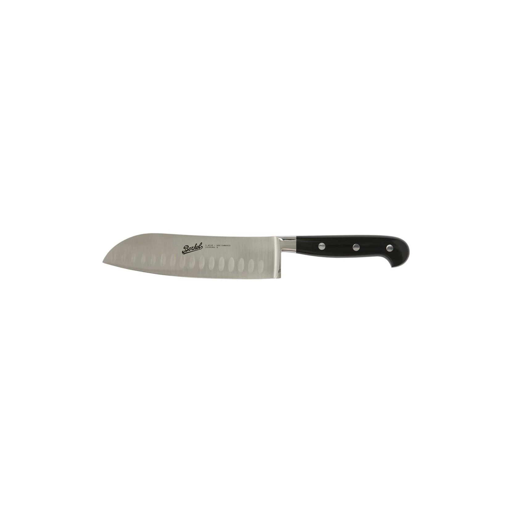 Coltello robusto e maneggevole con un rapporto equilibrato tra peso e rigidità. La lama fa un chiaro riferimento al disegno giapponese , uno strumento da cucina che si presta a qualsiasi tipo di alimento, dalla carne, pesce, frutta e verdura anche di grosso calibro. I caratteristici alveoli facilitano il dustacco delle fette.