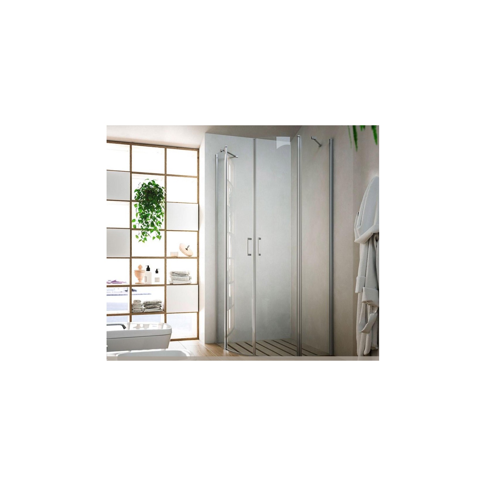 CRISTALLO: spessore 6 mm; finiture: trasparente, fumé, satinato, banda centrale; Shining Glass anticalcare: optional