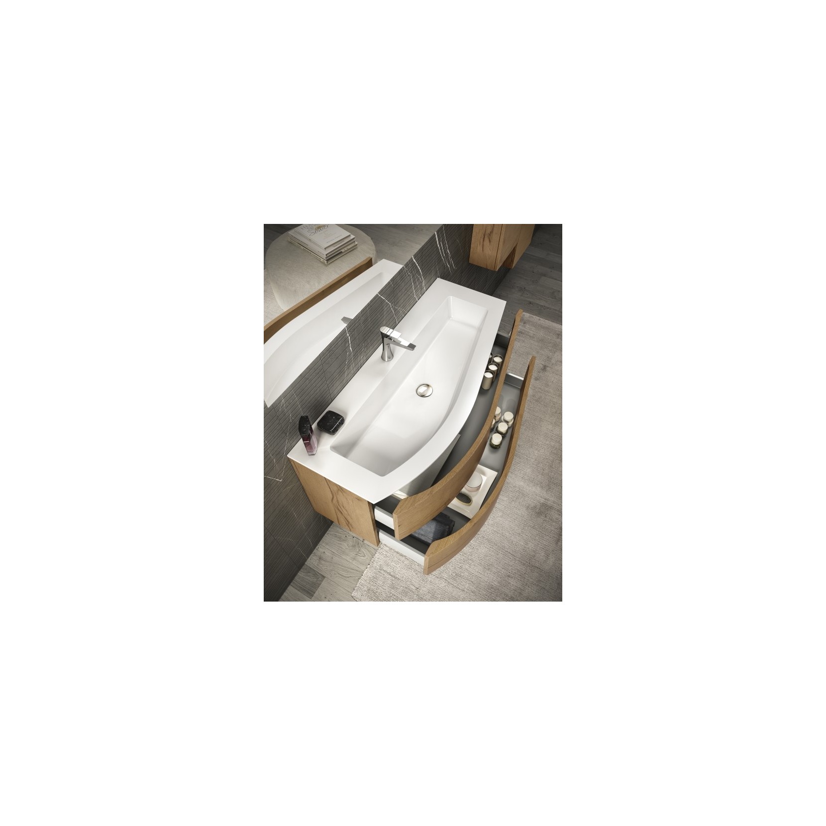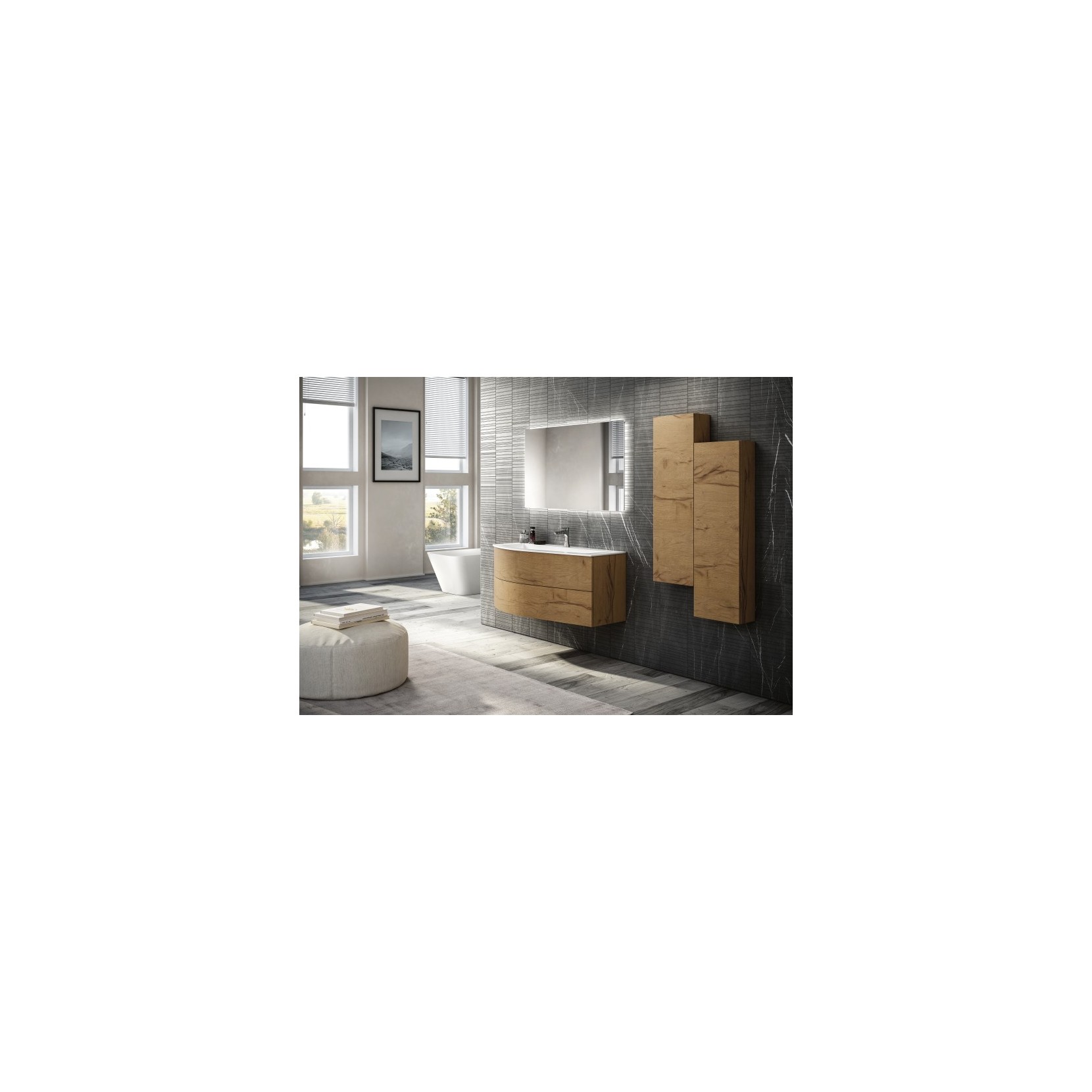 Portalavabo in essenza 961 Nativo Cotto, con apertura push pull; top in Tecnoplan. Specchio Eden retroilluminato luce LED. 1 Pensili in essenza 961 Nativo Cotto.