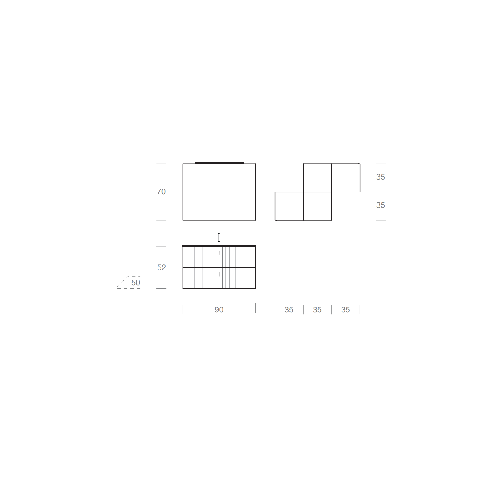 La composizione può essere richiesta in diverse misure o finiture, tramite preventivo.