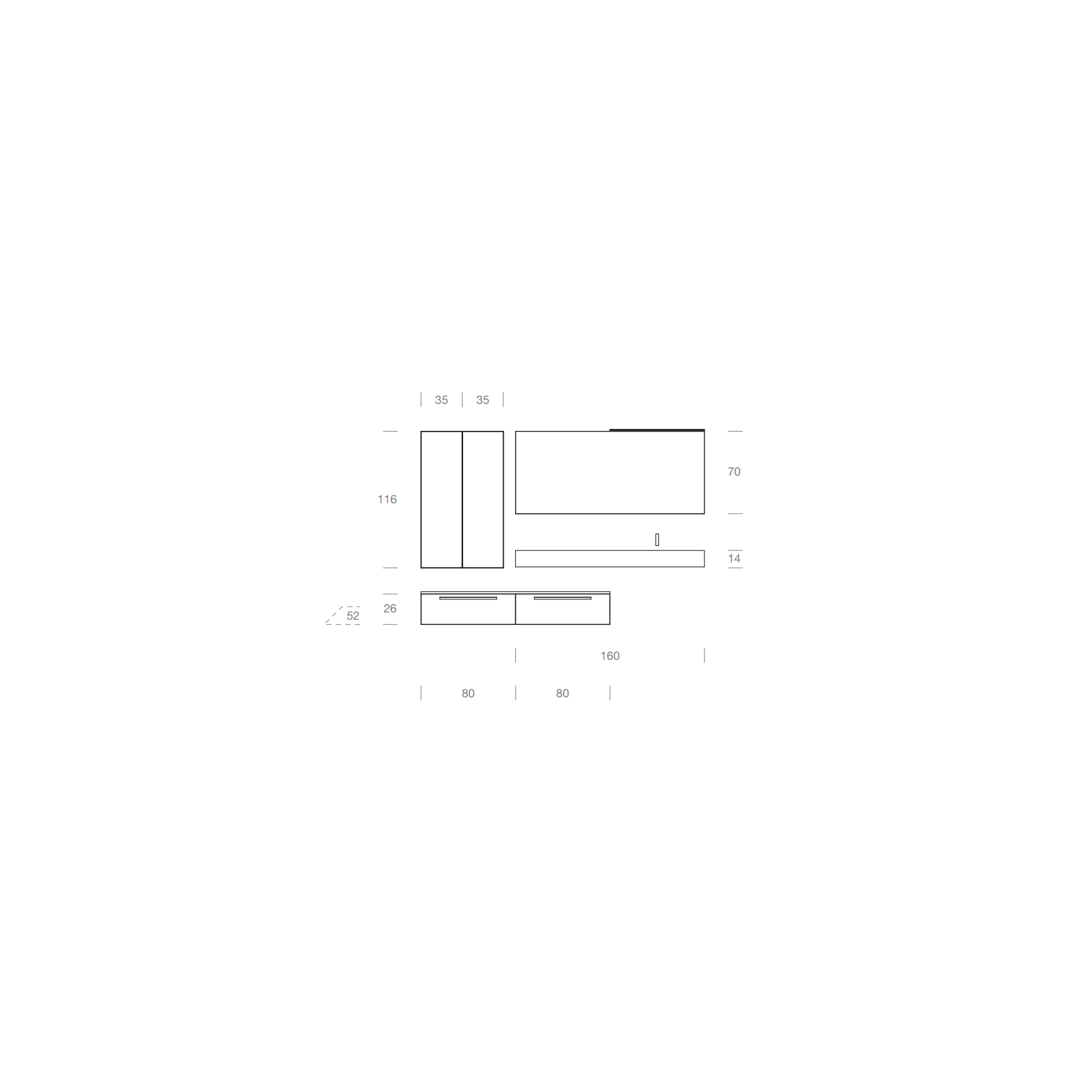 La composizione può essere richiesta in diverse misure o finiture, tramite preventivo.