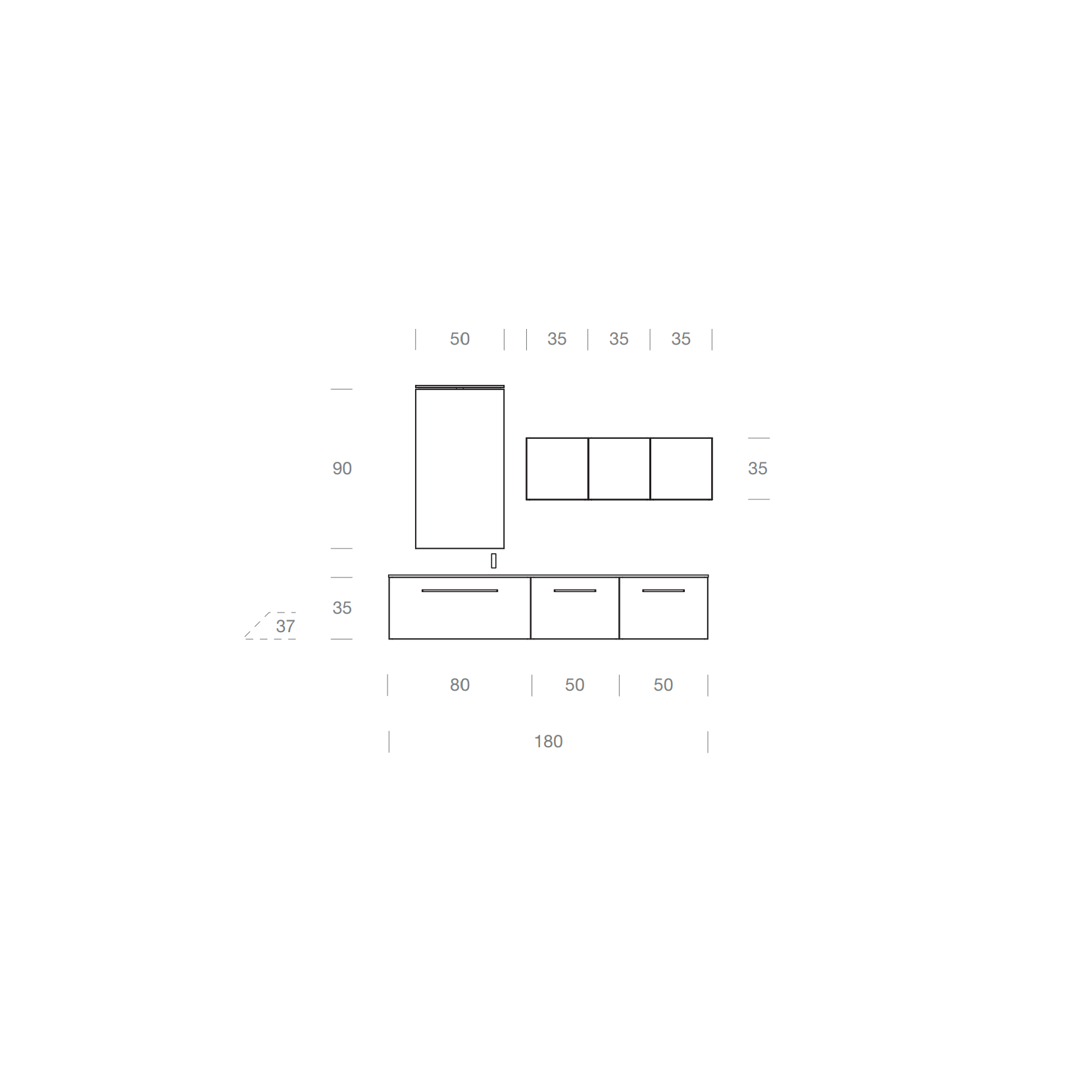 Portalavabo e base in essenza 945 Primitivo Grigio, con maniglia 50 35 35 35 G61 in metallo;