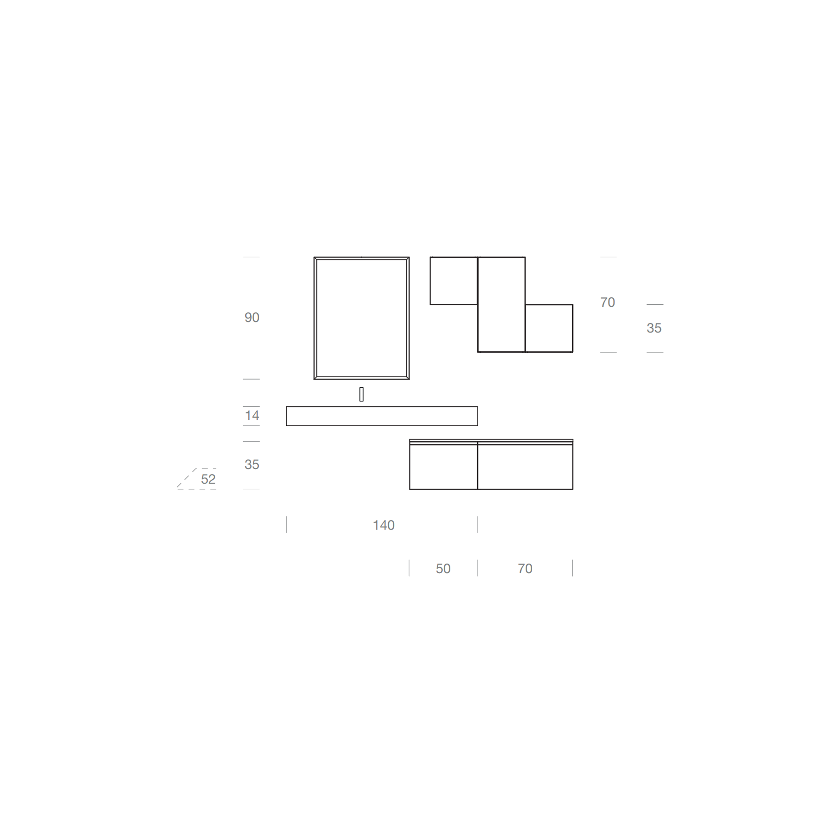 La composizione può essere richiesta in diverse misure o finiture, tramite preventivo.
