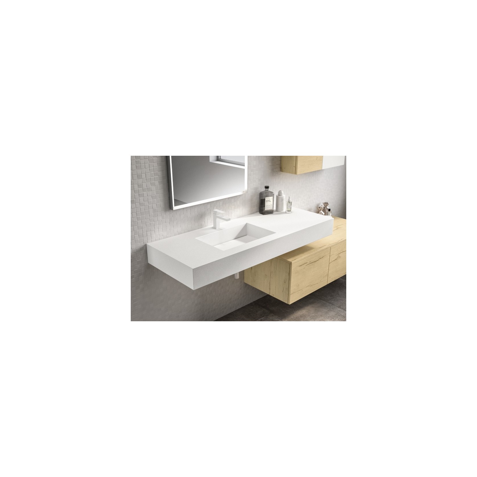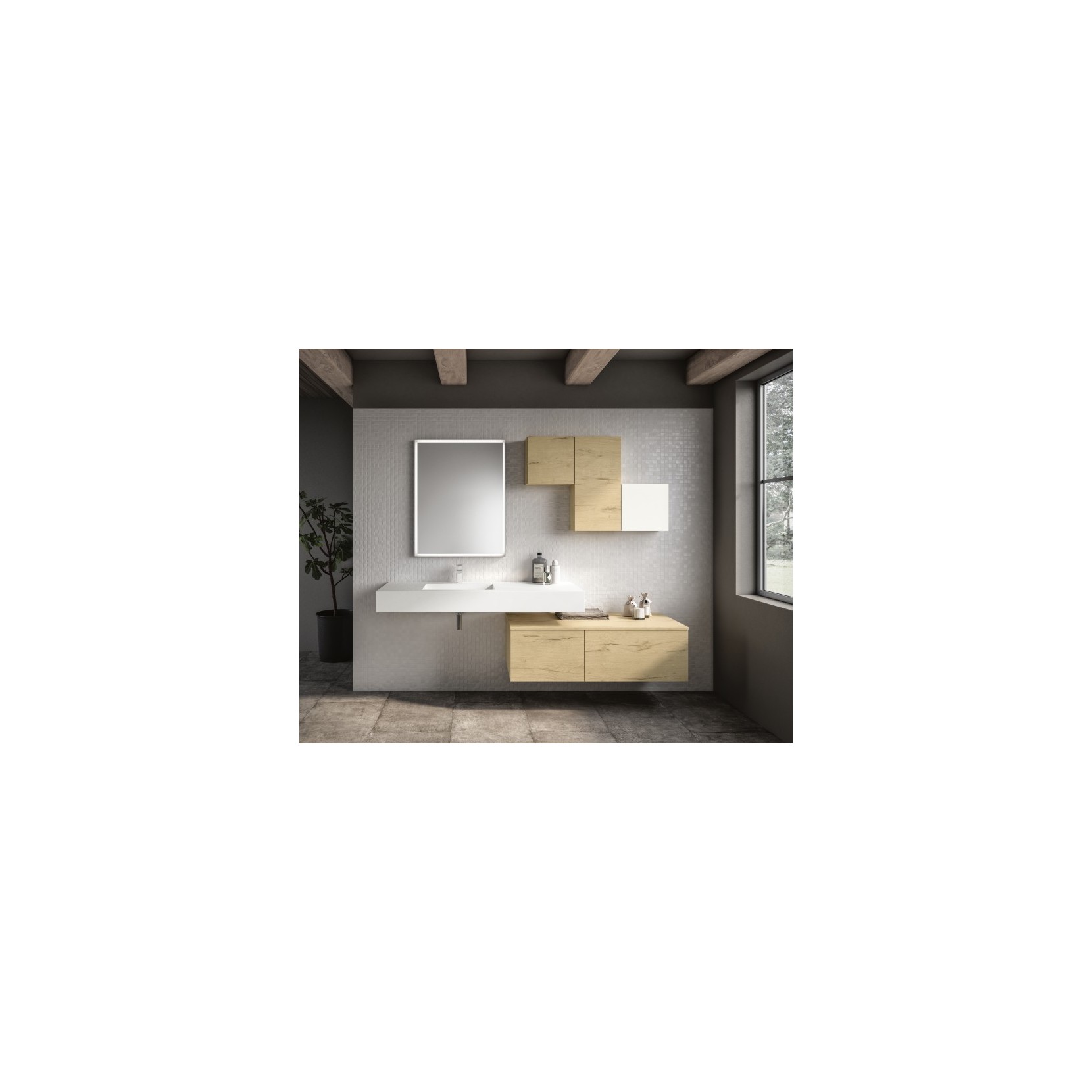 Top scatolato in Tecnolite bianco; basi in essenza 960 Nativo Naturale.